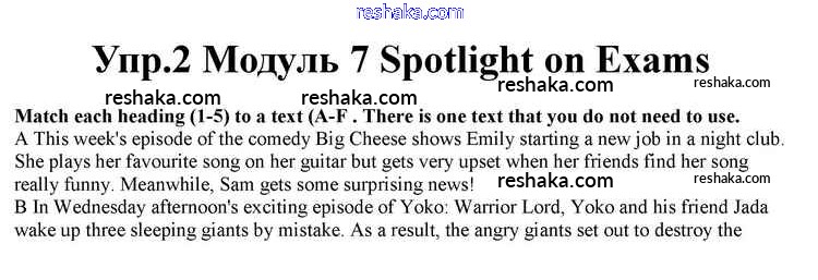 Представляем вам сборники по Английскому языку, с готовыми ответами к Учебнику Афанасьева школьной программы для учеников десятый класса. Это не просто гдз с ответом, а с подсказками, как верно решить Spotlight on Exams Module 7 2. Проверяй домашку с умом и получай высший балл!
