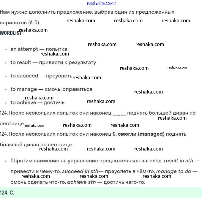 Представляем вам сборники по Английскому языку, с готовыми ответами к Рабочей тетради Баранова школьной программы для учеников десятый класса. Это не просто гдз с ответом, а с подсказками, как верно решить B Further practice section 124. Проверяй домашку с умом и получай высший балл!