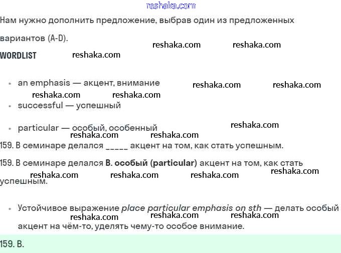 Представляем вам сборники по Английскому языку, с готовыми ответами к Рабочей тетради Баранова школьной программы для учеников десятый класса. Это не просто гдз с ответом, а с подсказками, как верно решить B Further practice section 159. Проверяй домашку с умом и получай высший балл!