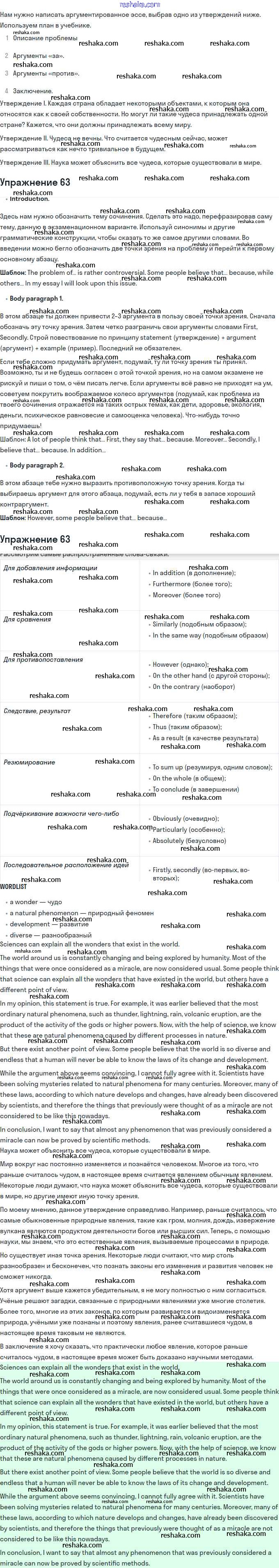 Представляем вам сборники по Английскому языку, с готовыми ответами к Учебнику Афанасьева школьной программы для учеников одиннадцатый класса. Это не просто гдз с ответом, а с подсказками, как верно решить Unit 3. Wonders of the World 63. Проверяй домашку с умом и получай высший балл!