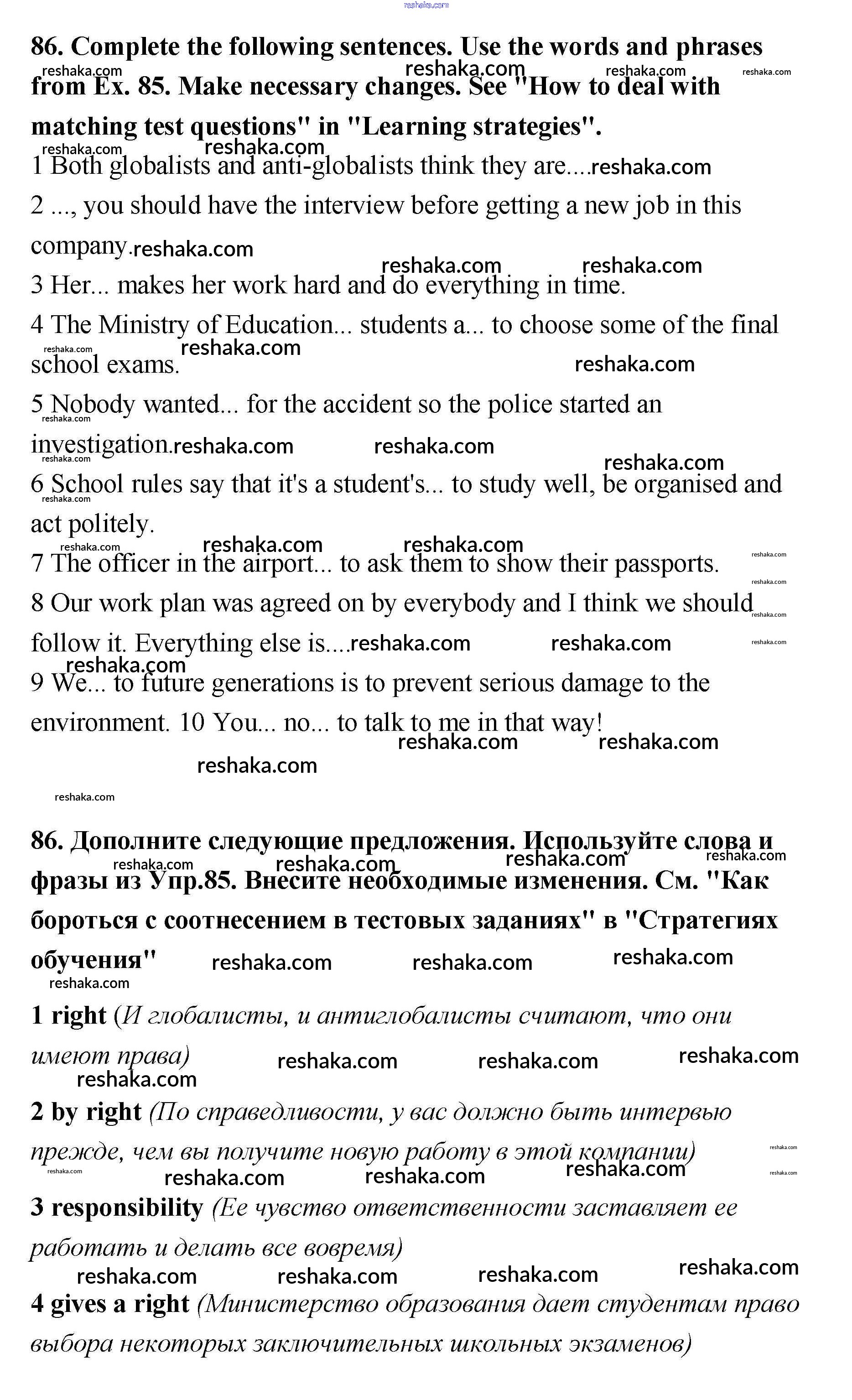Решака - онлайн ответы Английский язык Биболетова, Трубанева за 11 класс Учебник ФГОС 2015 - 86