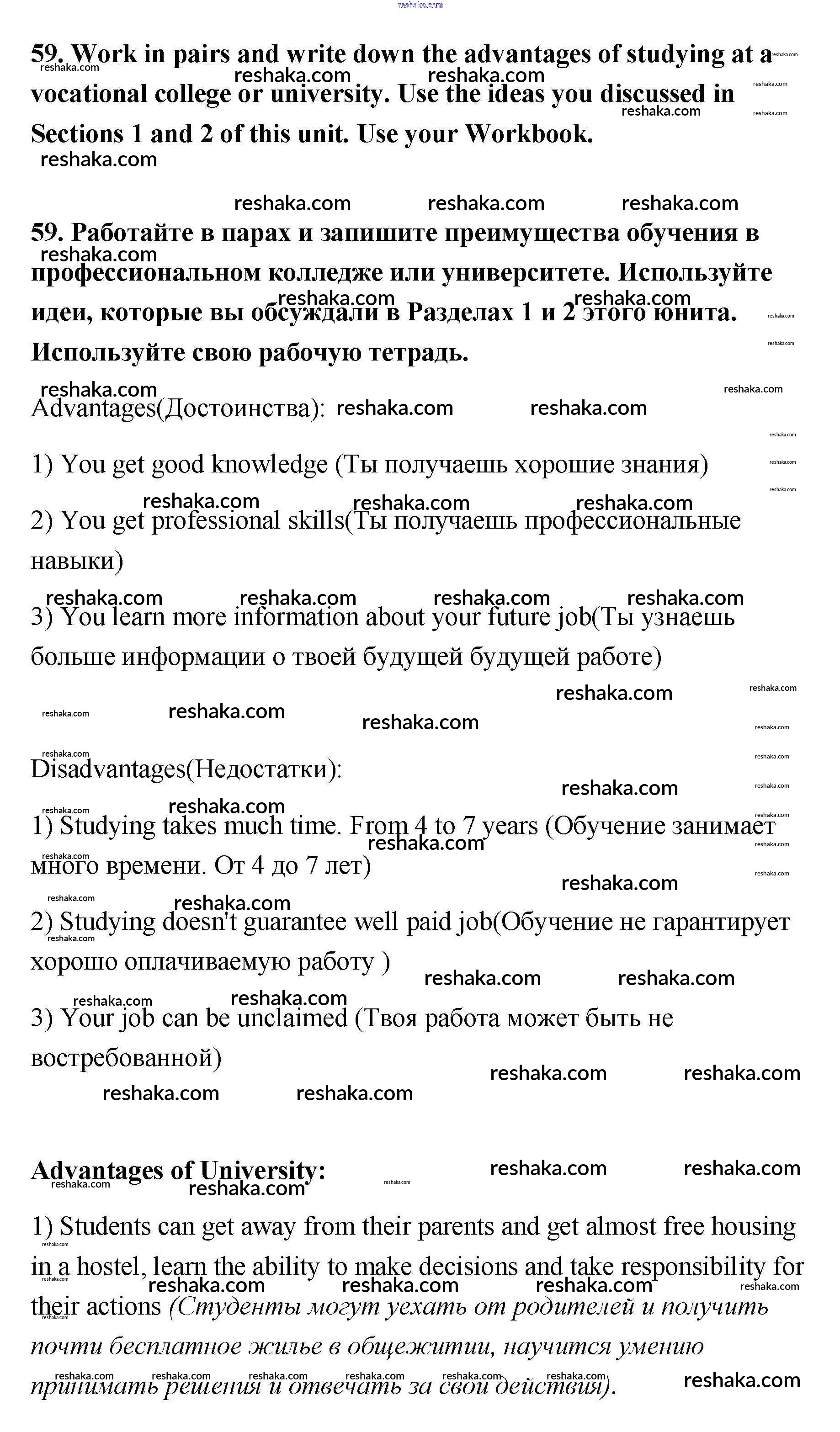Представляем вам сборники по Английскому языку, с готовыми ответами к Учебнику Биболетова школьной программы для учеников одиннадцатый класса. Это не просто гдз с ответом, а с подсказками, как верно решить Unit 2 59. Проверяй домашку с умом и получай высший балл!