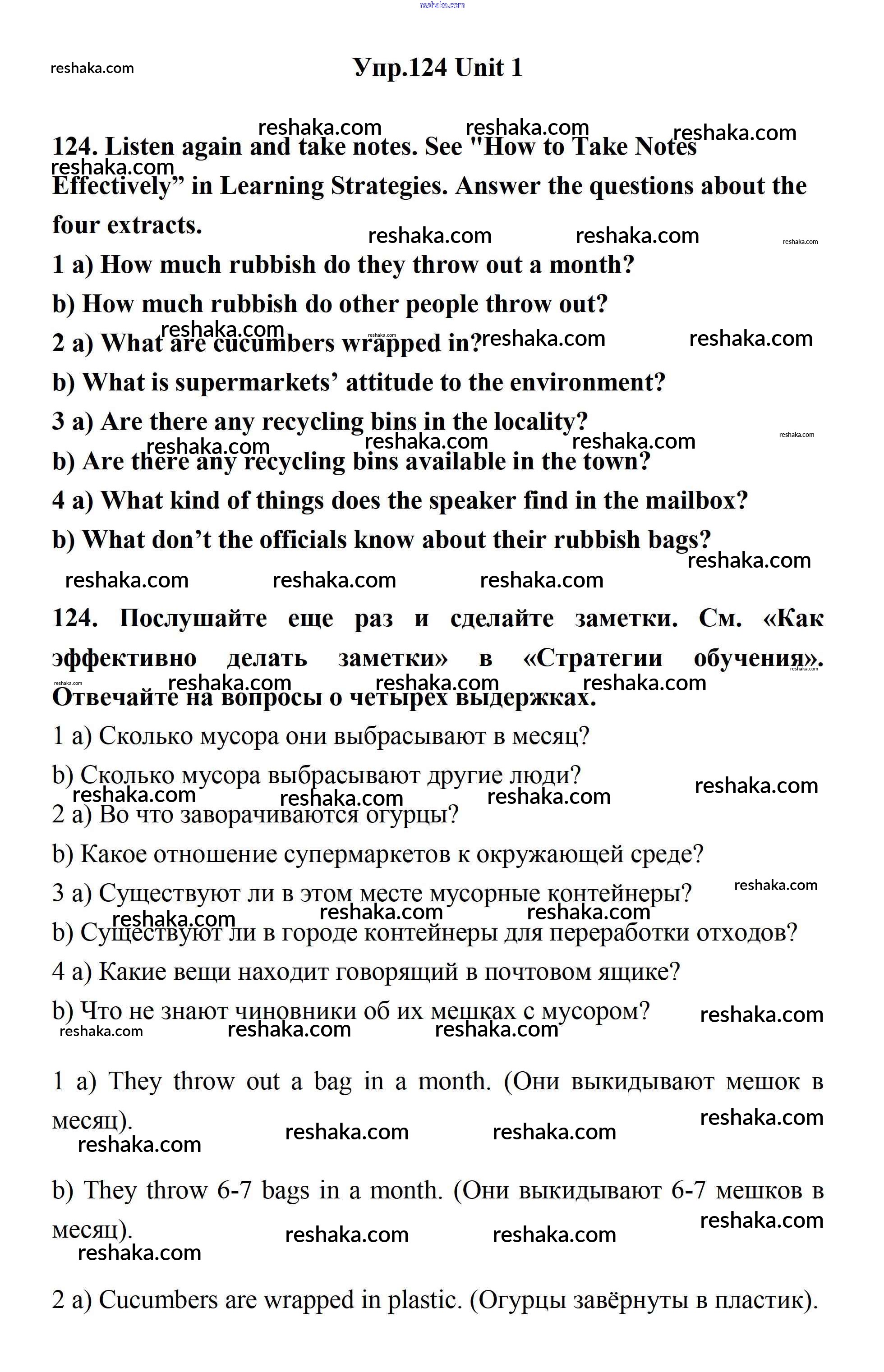 Решака - онлайн ответы Английский язык Биболетова, Бабушис за 11 класс Учебник ФГОС 2017 - 124