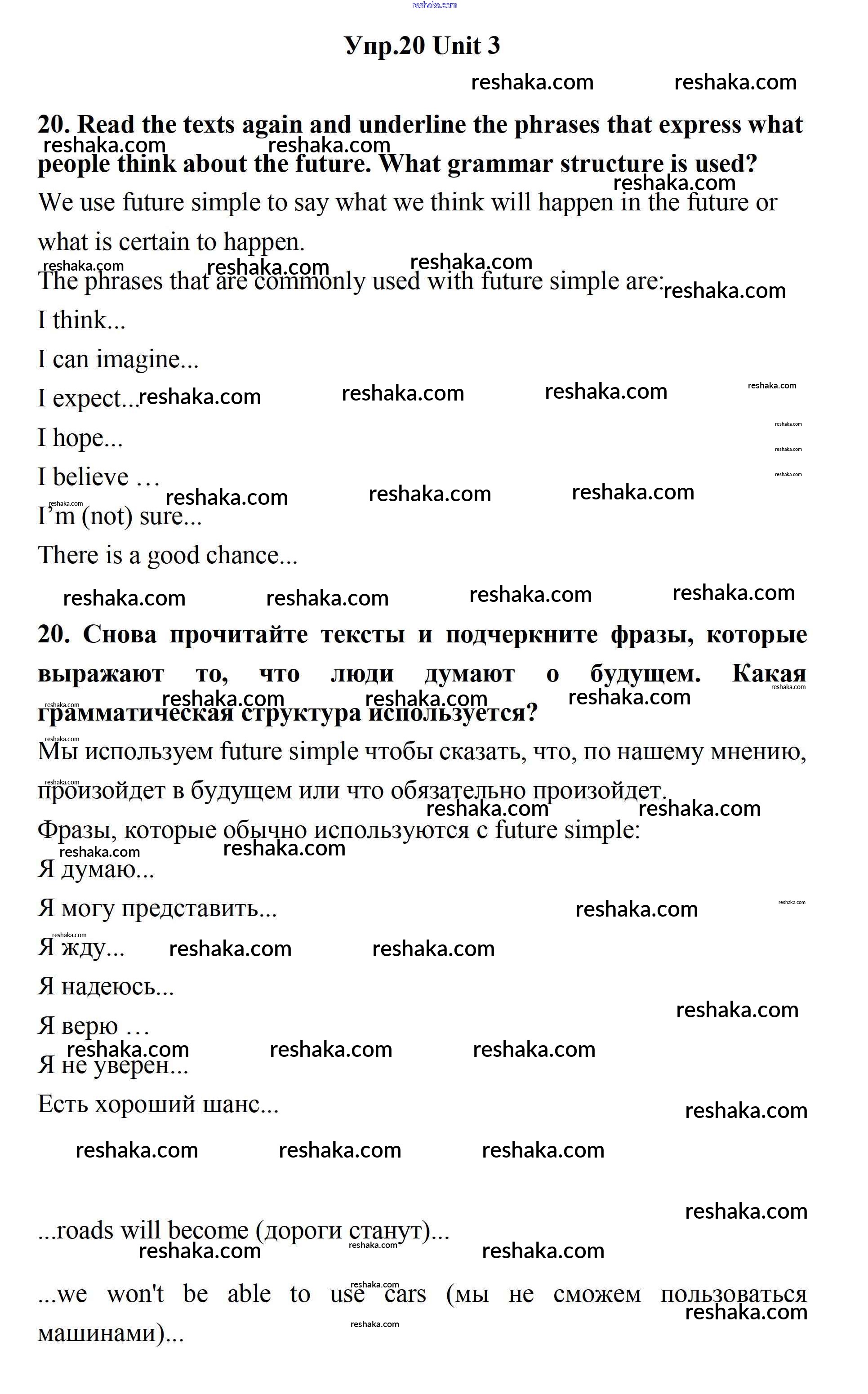 Представляем вам сборники по Английскому языку, с готовыми ответами к Учебнику Биболетова школьной программы для учеников одиннадцатый класса. Это не просто гдз с ответом, а с подсказками, как верно решить Unit 3. New Technological World 20. Проверяй домашку с умом и получай высший балл!
