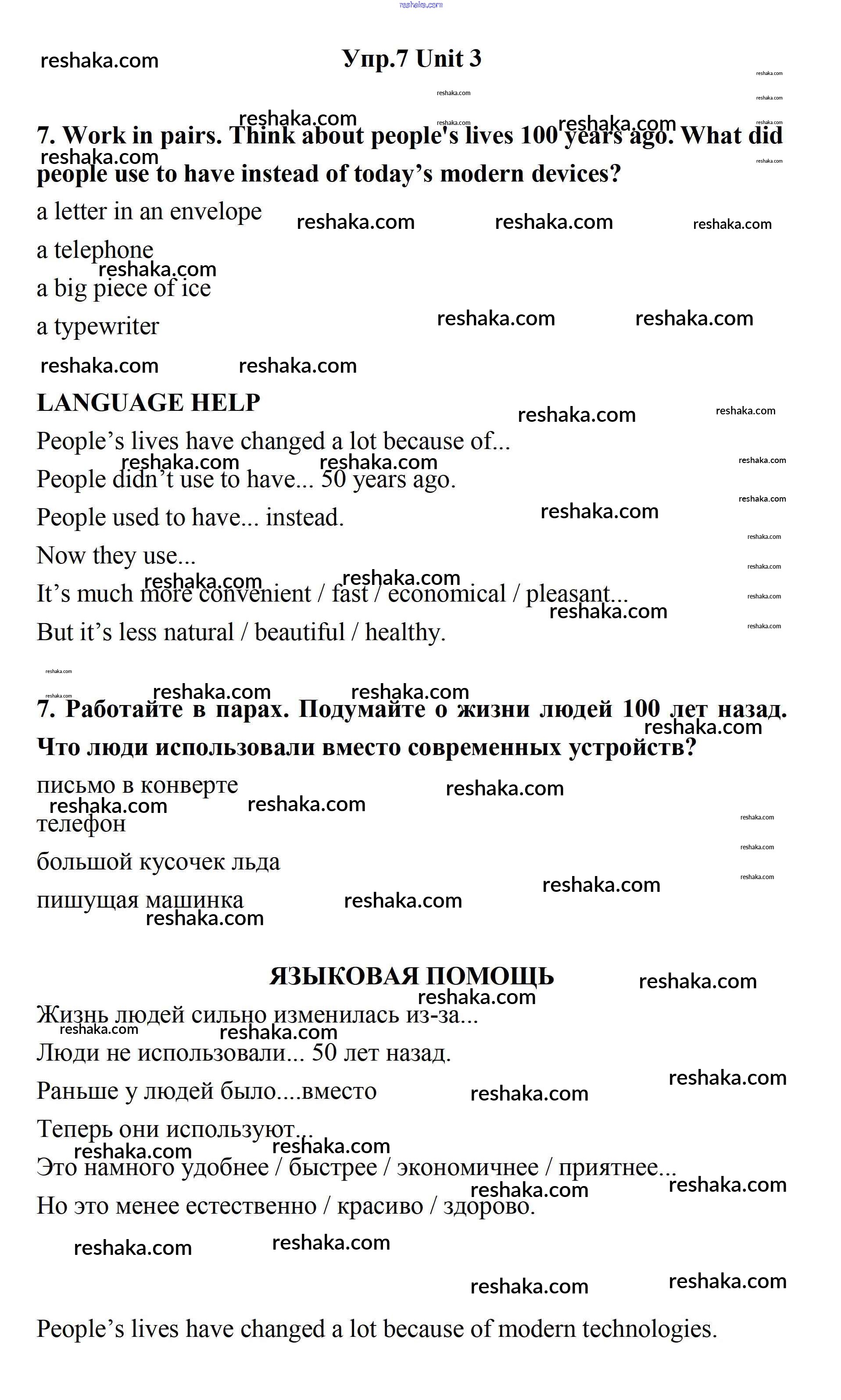 Представляем вам сборники по Английскому языку, с готовыми ответами к Учебнику Биболетова школьной программы для учеников одиннадцатый класса. Это не просто гдз с ответом, а с подсказками, как верно решить Unit 3. New Technological World 7. Проверяй домашку с умом и получай высший балл!