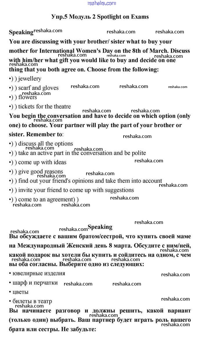 Решака - онлайн ответы Английский язык Эванс, Дули за 11 класс Учебник ФГОС 2015 - Speaking