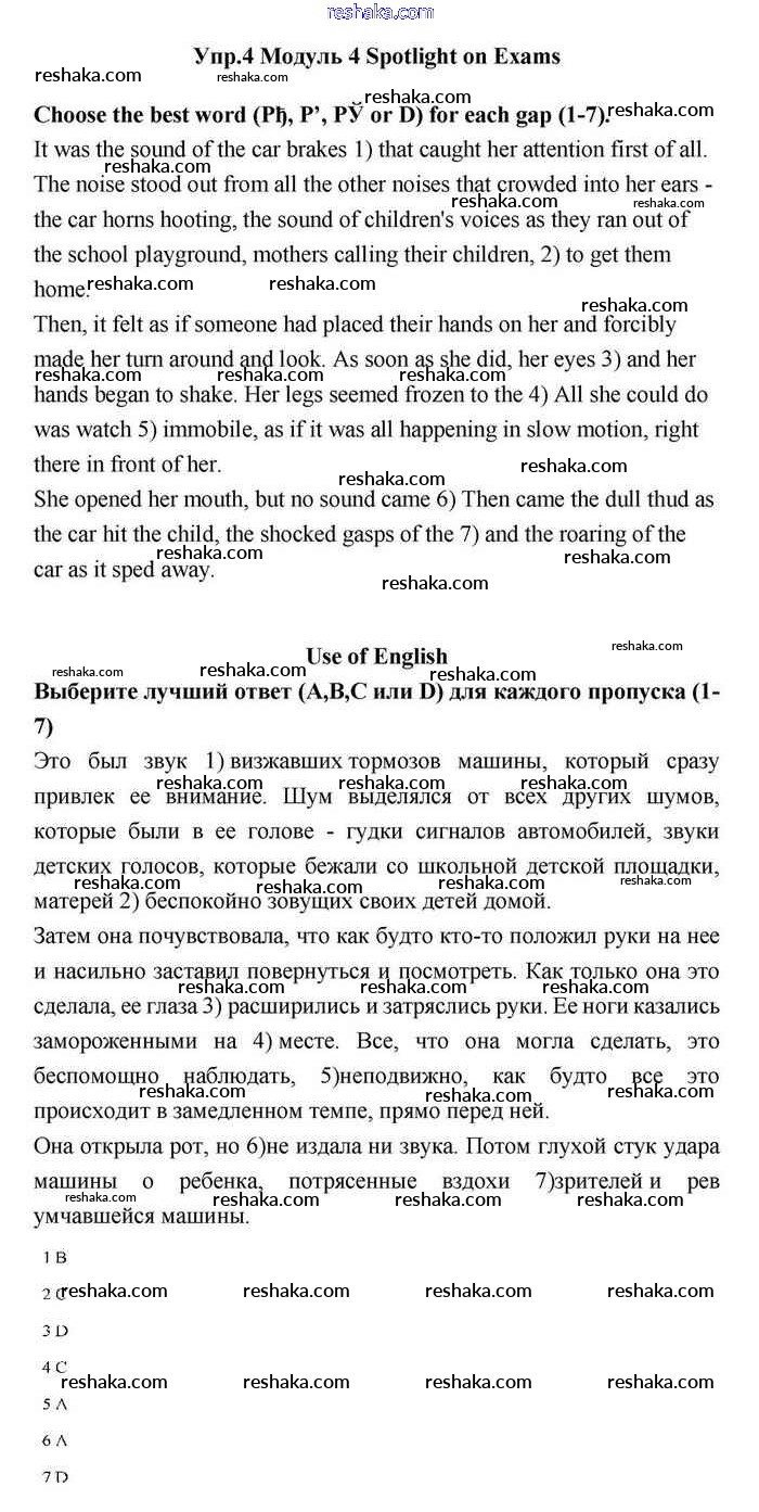 Представляем вам сборники по Английскому языку, с готовыми ответами к Учебнику Эванс школьной программы для учеников одиннадцатый класса. Это не просто гдз с ответом, а с подсказками, как верно решить Spotlight on exams Module 4. Danger! Use of English. Проверяй домашку с умом и получай высший балл!