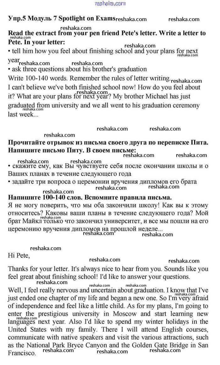 Решака - онлайн ответы Английский язык Эванс, Дули за 11 класс Учебник ФГОС 2015 - Writing