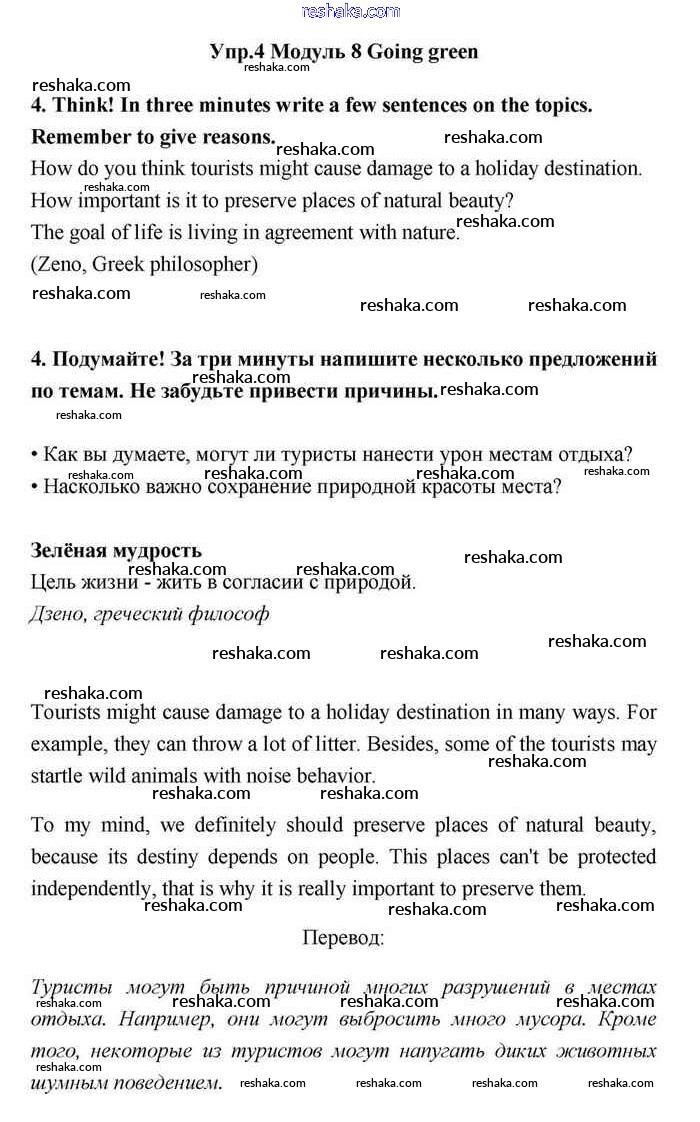 Представляем вам сборники по Английскому языку, с готовыми ответами к Учебнику Эванс школьной программы для учеников одиннадцатый класса. Это не просто гдз с ответом, а с подсказками, как верно решить Going green Module 8. Travel 4. Проверяй домашку с умом и получай высший балл!