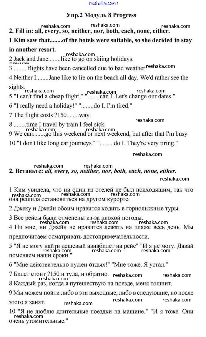 Представляем вам сборники по Английскому языку, с готовыми ответами к Учебнику Эванс школьной программы для учеников одиннадцатый класса. Это не просто гдз с ответом, а с подсказками, как верно решить Progress check 8 Module 8. Travel 2. Проверяй домашку с умом и получай высший балл!