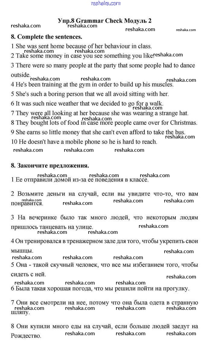 Представляем вам сборники по Английскому языку, с готовыми ответами к Учебнику Эванс школьной программы для учеников одиннадцатый класса. Это не просто гдз с ответом, а с подсказками, как верно решить Module 2 Grammar Check 8. Проверяй домашку с умом и получай высший балл!
