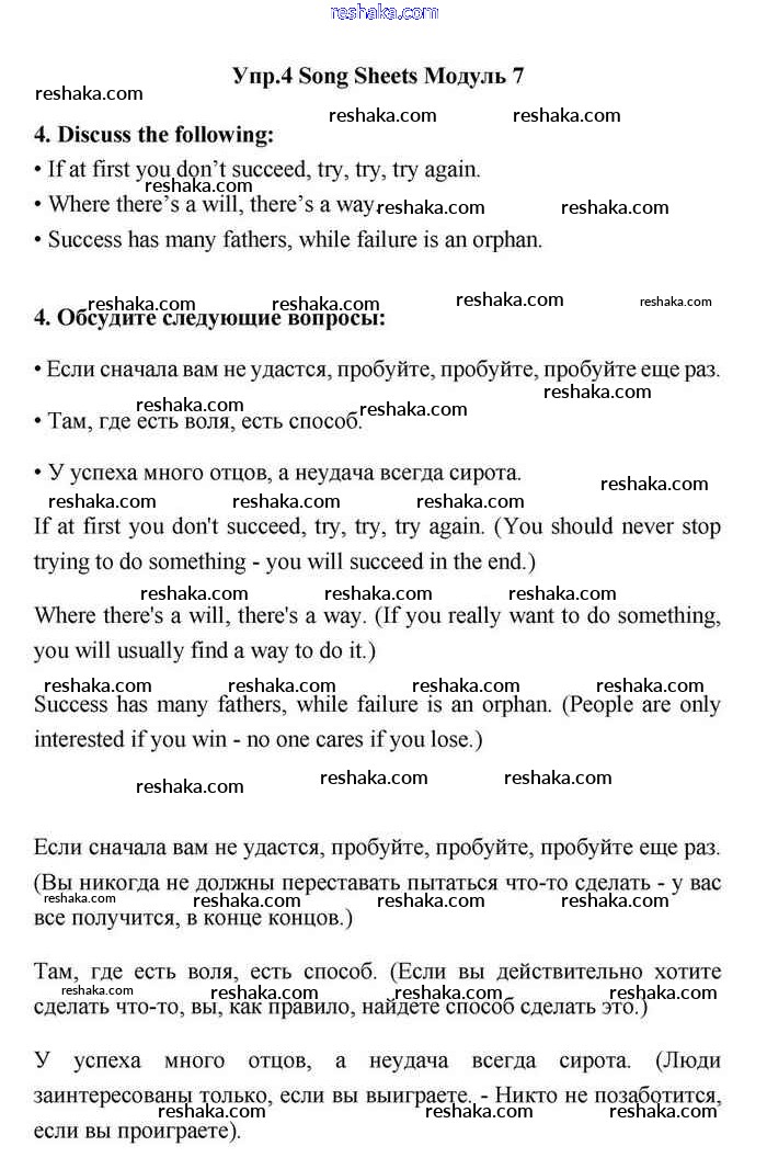 Представляем вам сборники по Английскому языку, с готовыми ответами к Учебнику Эванс школьной программы для учеников одиннадцатый класса. Это не просто гдз с ответом, а с подсказками, как верно решить Module 7 Song sheets 4. Проверяй домашку с умом и получай высший балл!