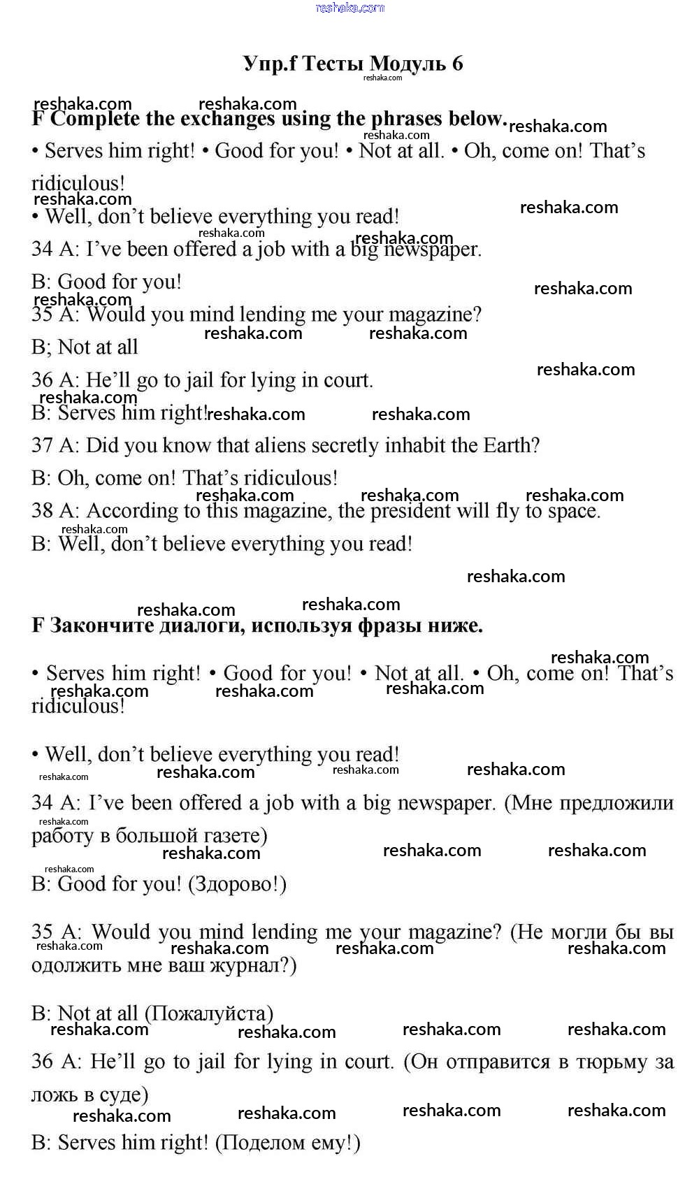 Решака - онлайн ответы Английский язык Эванс, Дули за 11 класс Учебник ФГОС 2015 - F