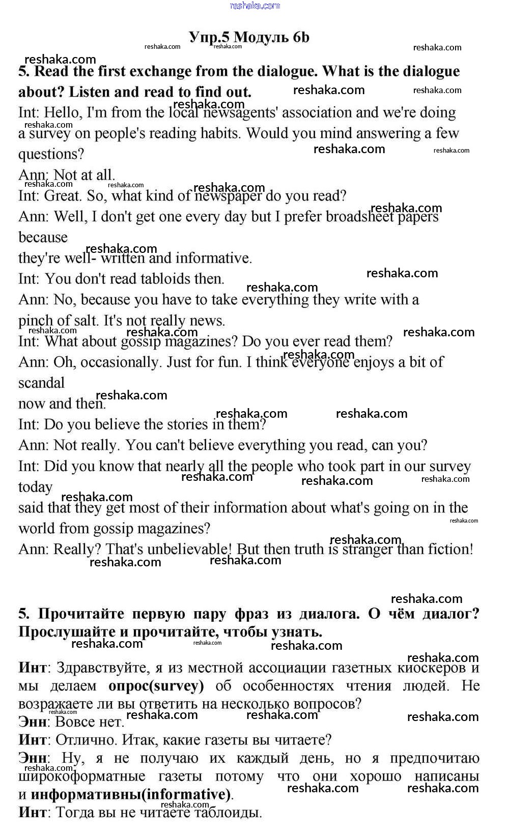 Решака - онлайн ответы Английский язык Эванс, Дули за 11 класс Учебник ФГОС 2015 - 5