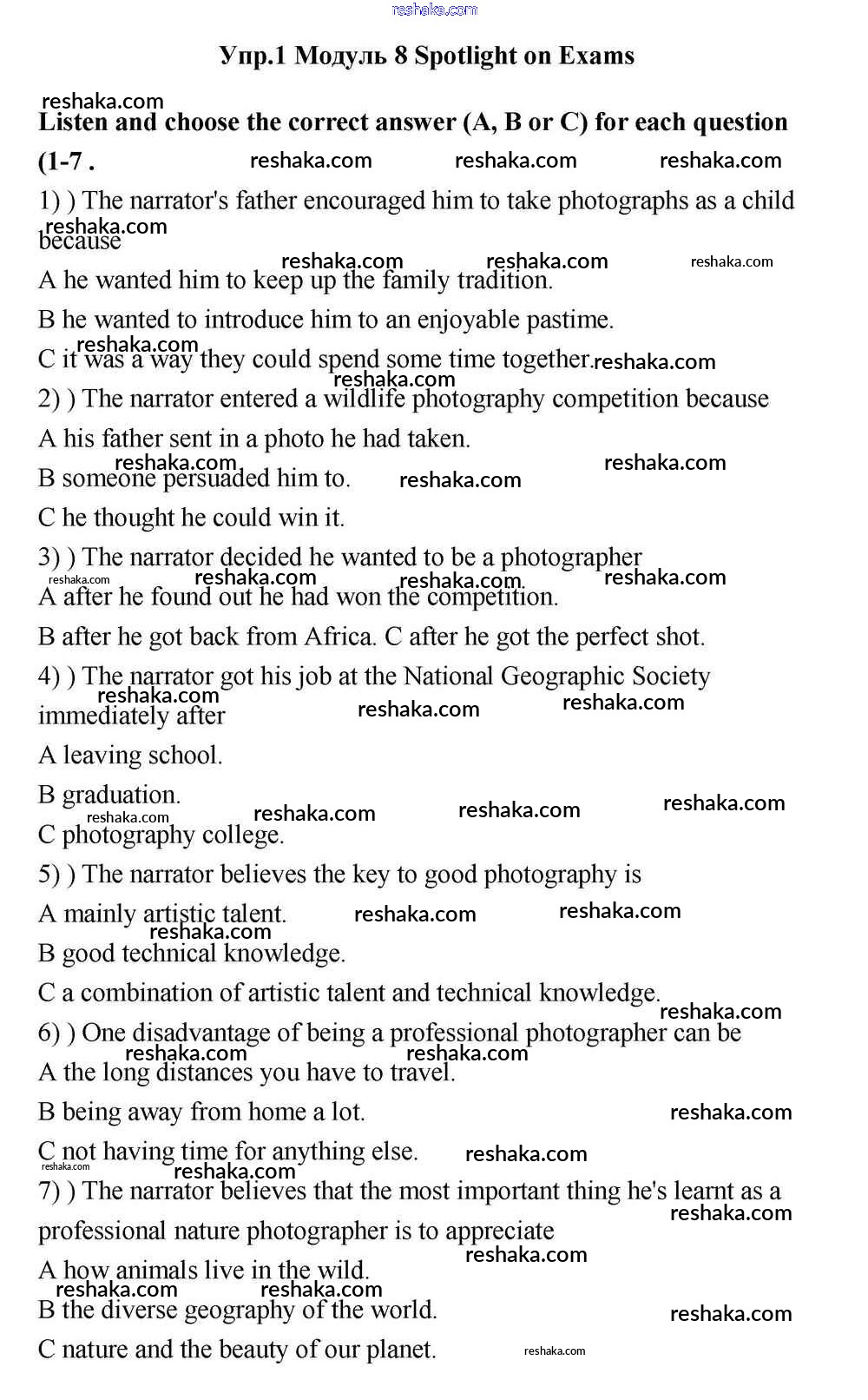 Представляем вам сборники по Английскому языку, с готовыми ответами к Учебнику Эванс школьной программы для учеников одиннадцатый класса. Это не просто гдз с ответом, а с подсказками, как верно решить Spotlight on Exams Module 8 1. Проверяй домашку с умом и получай высший балл!