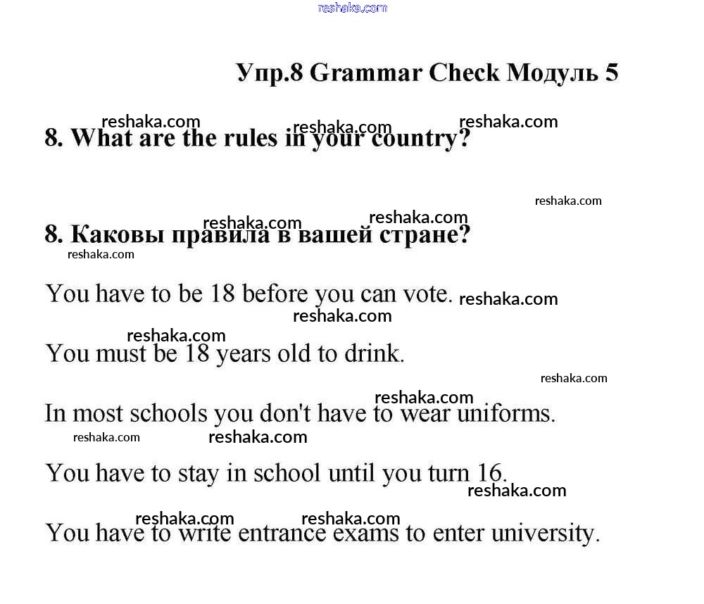 Представляем вам сборники по Английскому языку, с готовыми ответами к Учебнику Эванс школьной программы для учеников одиннадцатый класса. Это не просто гдз с ответом, а с подсказками, как верно решить Module 5 Grammar Check 8. Проверяй домашку с умом и получай высший балл!