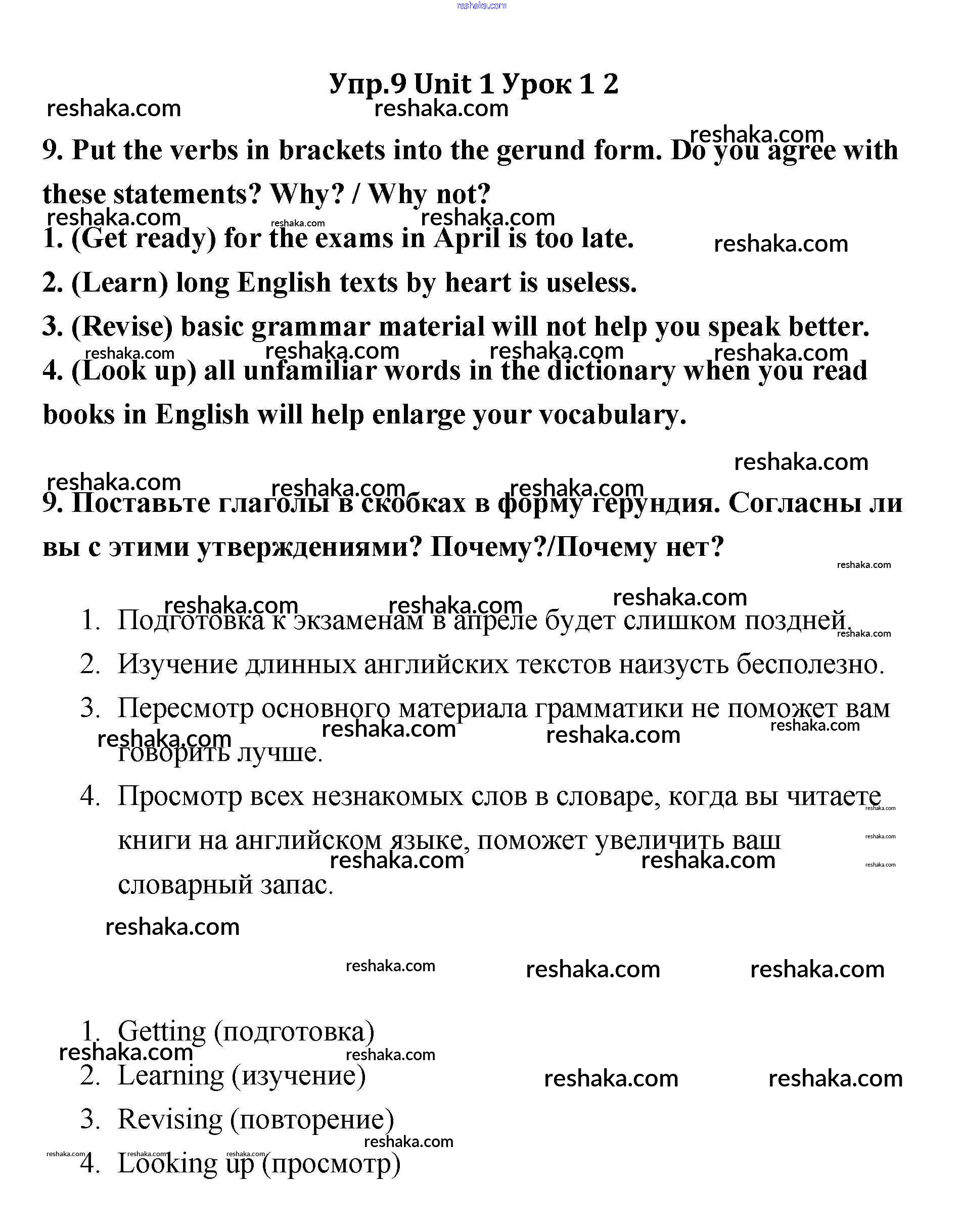 Представляем вам сборники по Английскому языку, с готовыми ответами к Учебнику Кауфман школьной программы для учеников одиннадцатый класса. Это не просто гдз с ответом, а с подсказками, как верно решить Lesson 1-2 Unit 1 9. Проверяй домашку с умом и получай высший балл!