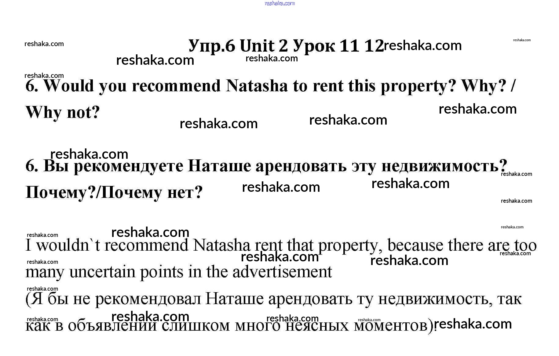 Представляем вам сборники по Английскому языку, с готовыми ответами к Учебнику Кауфман школьной программы для учеников одиннадцатый класса. Это не просто гдз с ответом, а с подсказками, как верно решить Lesson 11-12 Unit 2 6. Проверяй домашку с умом и получай высший балл!