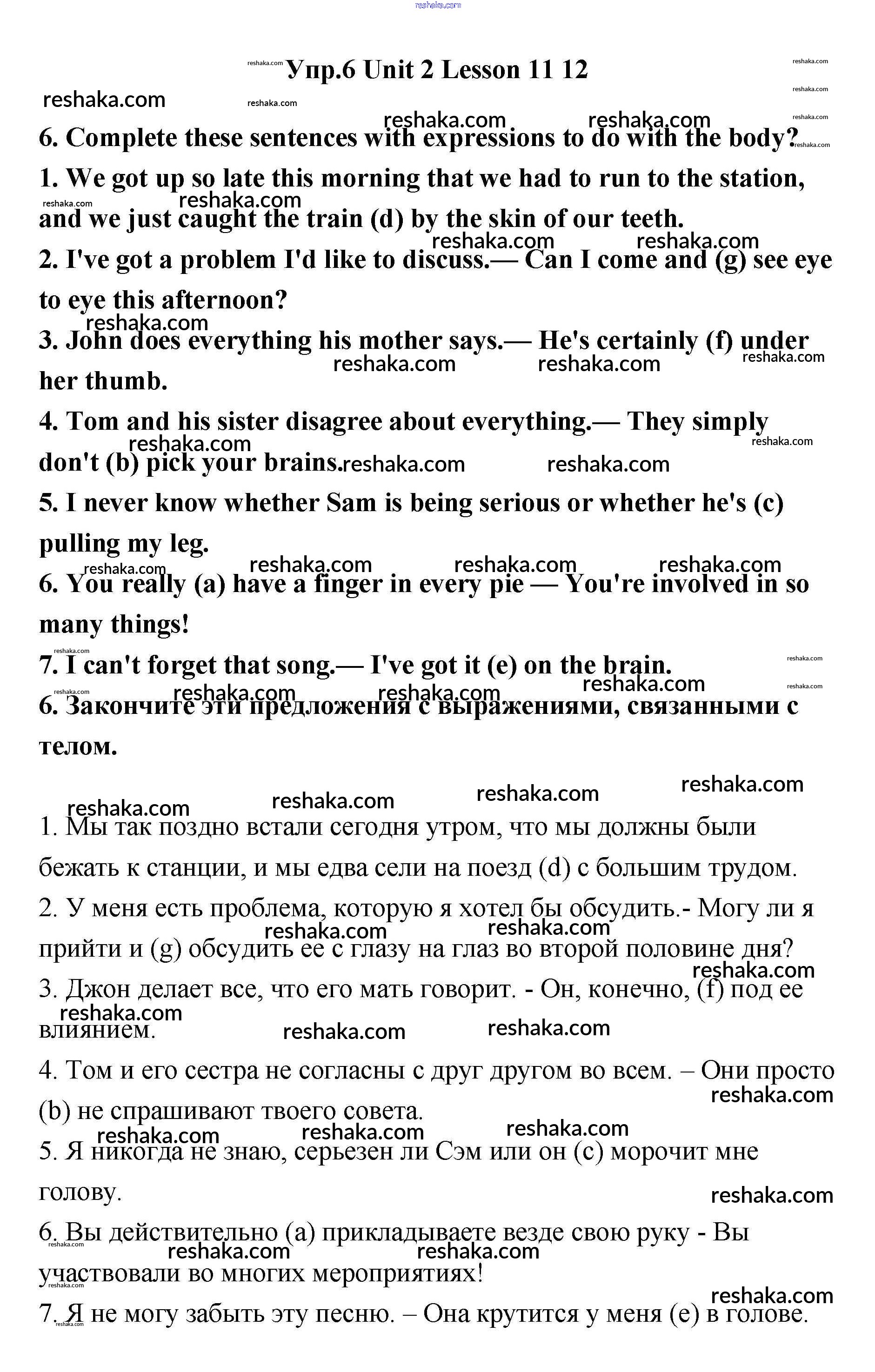 Представляем вам сборники по Английскому языку, с готовыми ответами к Рабочей тетради Кауфман школьной программы для учеников одиннадцатый класса. Это не просто гдз с ответом, а с подсказками, как верно решить Lesson 11, 12 Unit 2 6. Проверяй домашку с умом и получай высший балл!
