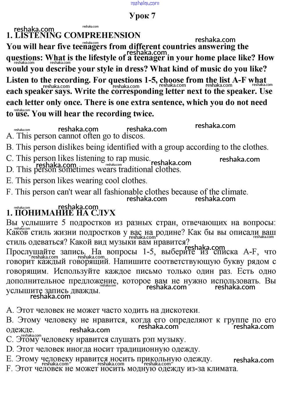 Решака - онлайн ответы Английский язык Кузовлев, Лапа за 10-11 класс Учебник ФГОС 2012 - 1