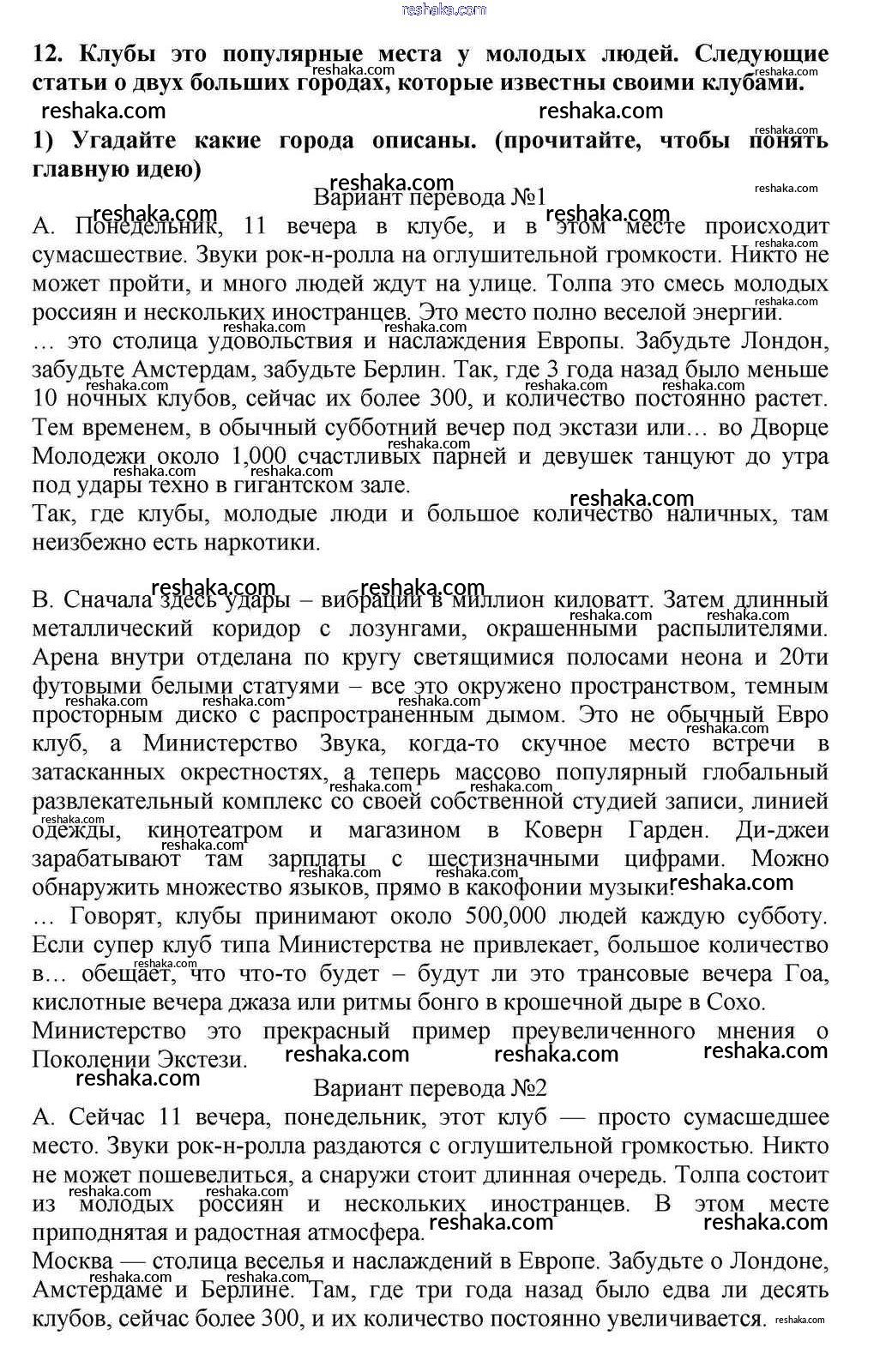 Решака - онлайн ответы Английский язык Кузовлев, Лапа за 10-11 класс Учебник ФГОС 2012 - 12