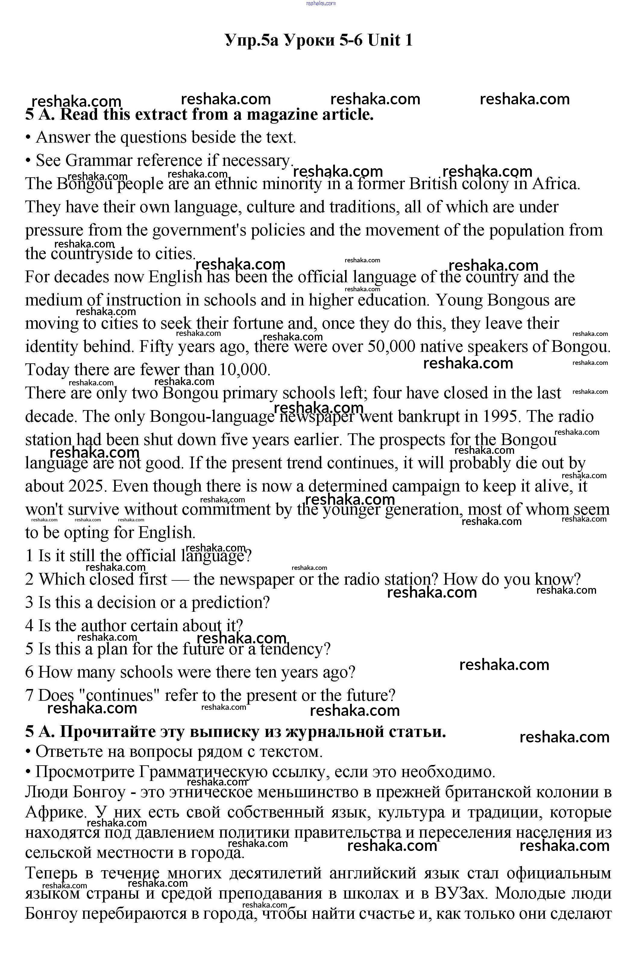 Решака - онлайн ответы Английский язык Гроза, Дворецкая за 11 класс Учебник ФГОС 2015 - 5a