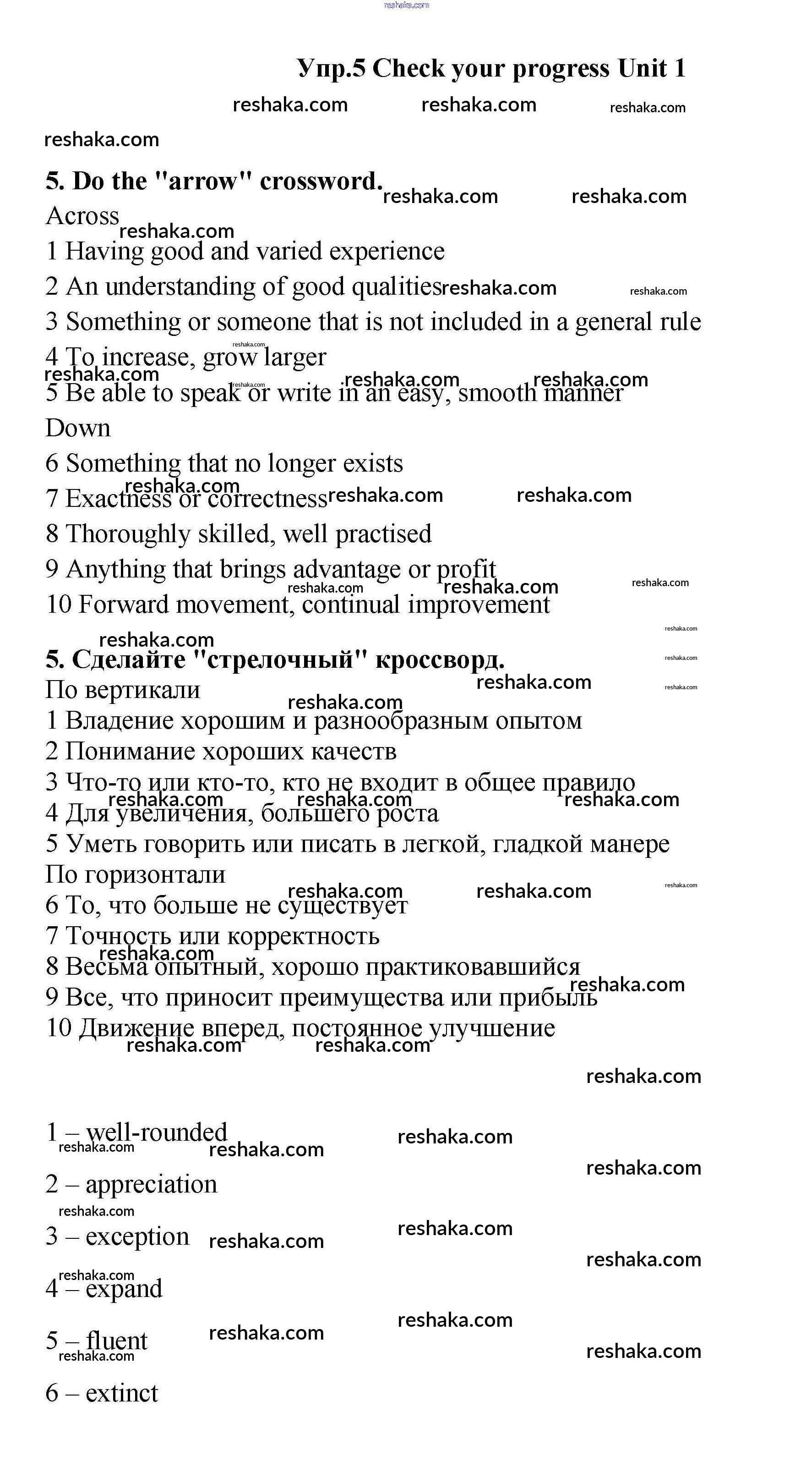 Представляем вам сборники по Английскому языку, с готовыми ответами к Учебнику Гроза школьной программы для учеников одиннадцатый класса. Это не просто гдз с ответом, а с подсказками, как верно решить Check your progress Unit 1 5. Проверяй домашку с умом и получай высший балл!