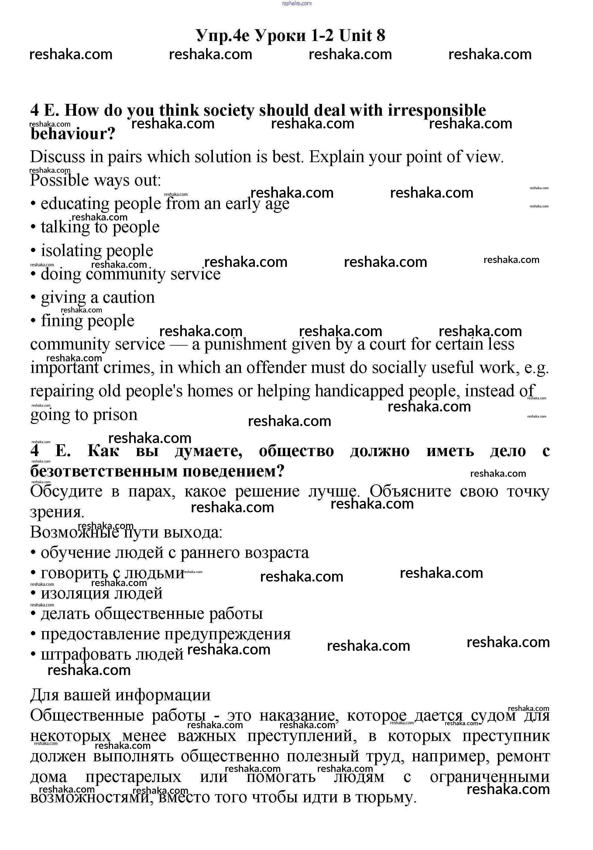 Представляем вам сборники по Английскому языку, с готовыми ответами к Учебнику Гроза школьной программы для учеников одиннадцатый класса. Это не просто гдз с ответом, а с подсказками, как верно решить lesson 1-2 Unit 8 4e. Проверяй домашку с умом и получай высший балл!