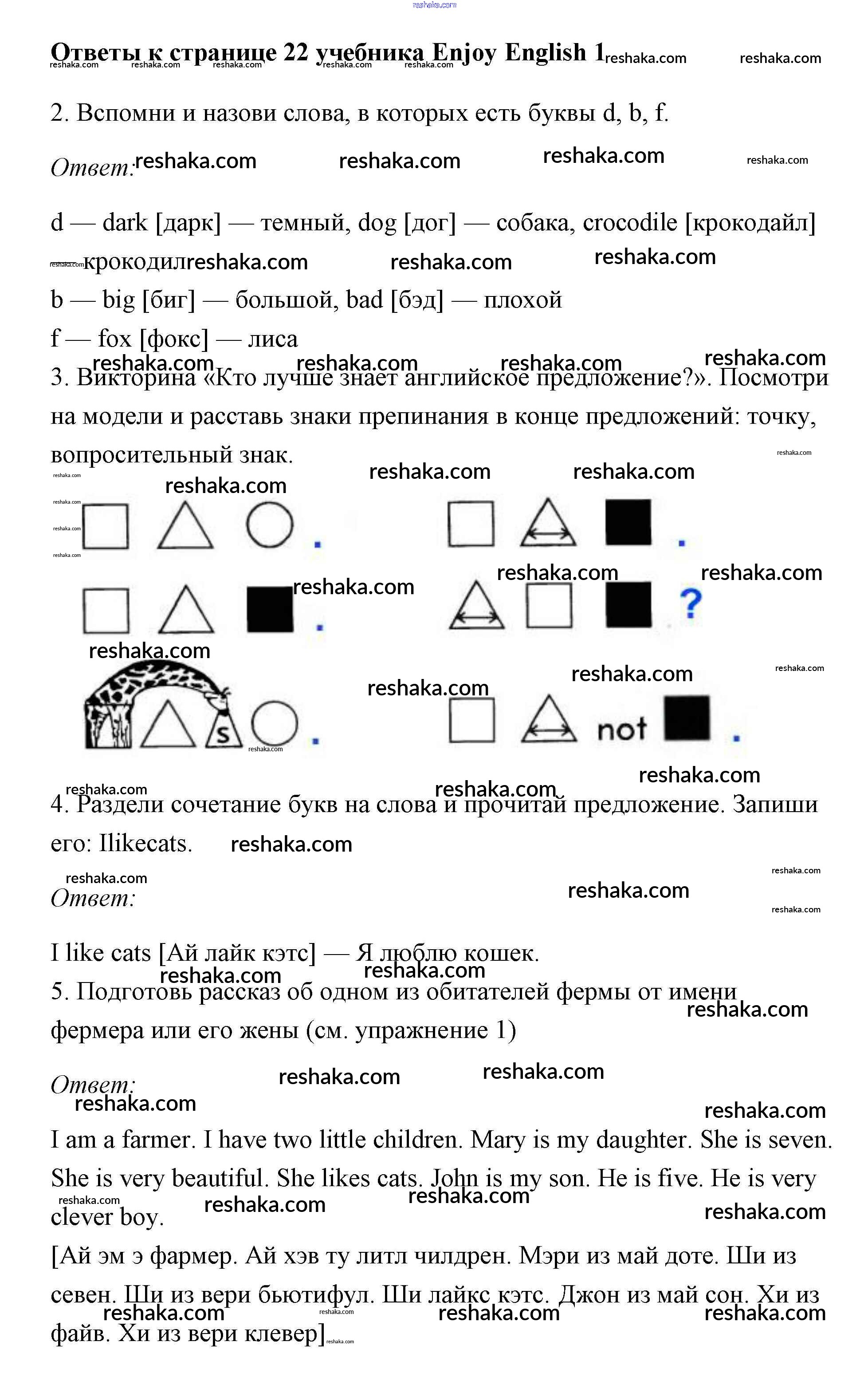 Решака - онлайн ответы Английский язык Биболетова, Добрынина за 1 класс Учебник 2010 - 22