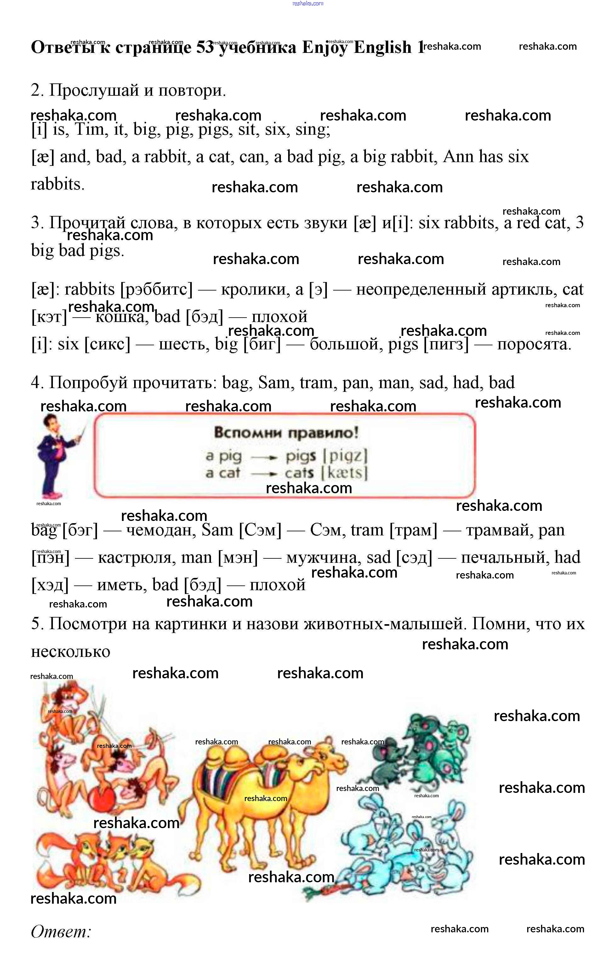 Решака - онлайн ответы Английский язык Биболетова, Добрынина за 1 класс Учебник 2010 - 53
