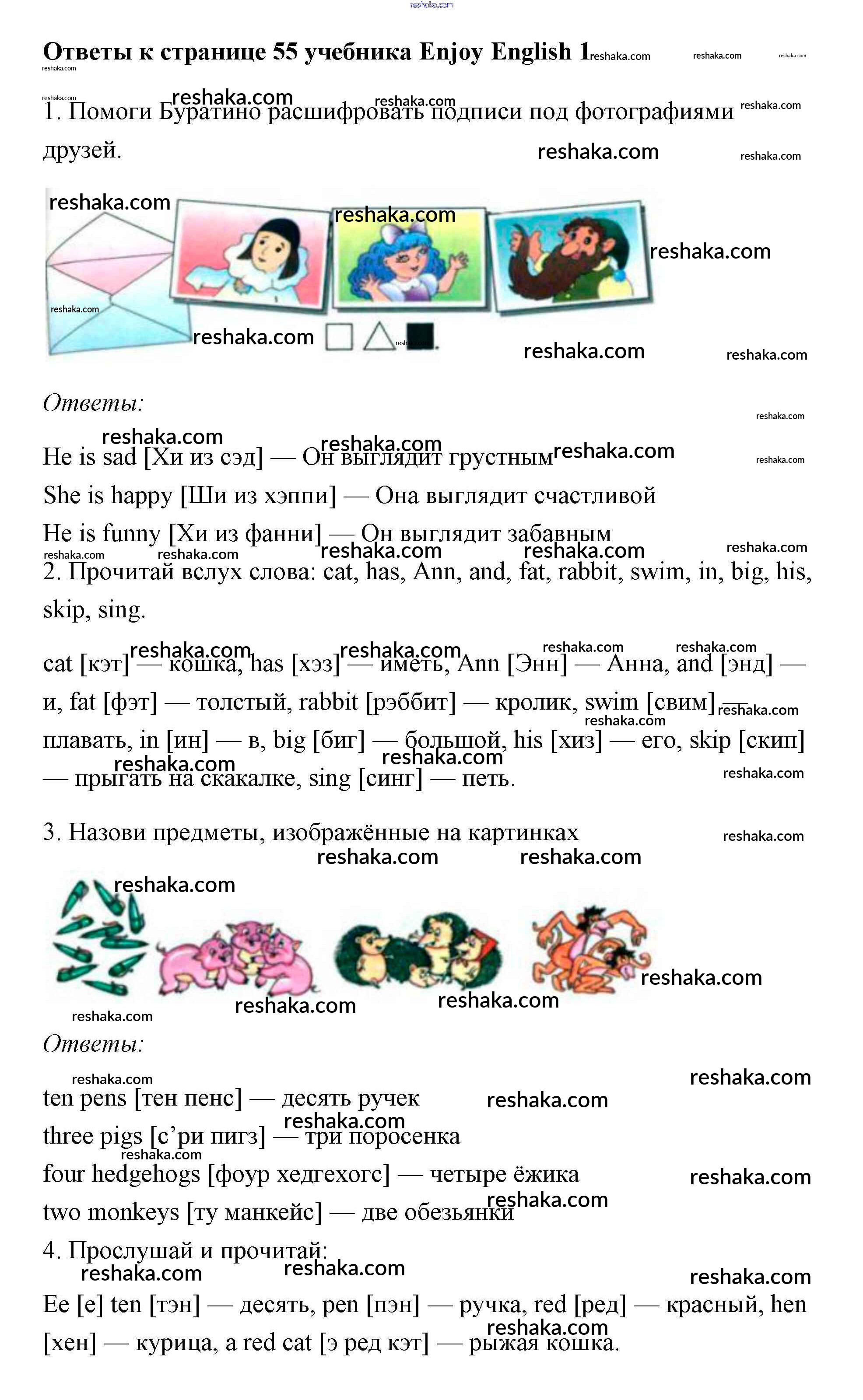 Решака - онлайн ответы Английский язык Биболетова, Добрынина за 1 класс Учебник 2010 - 55