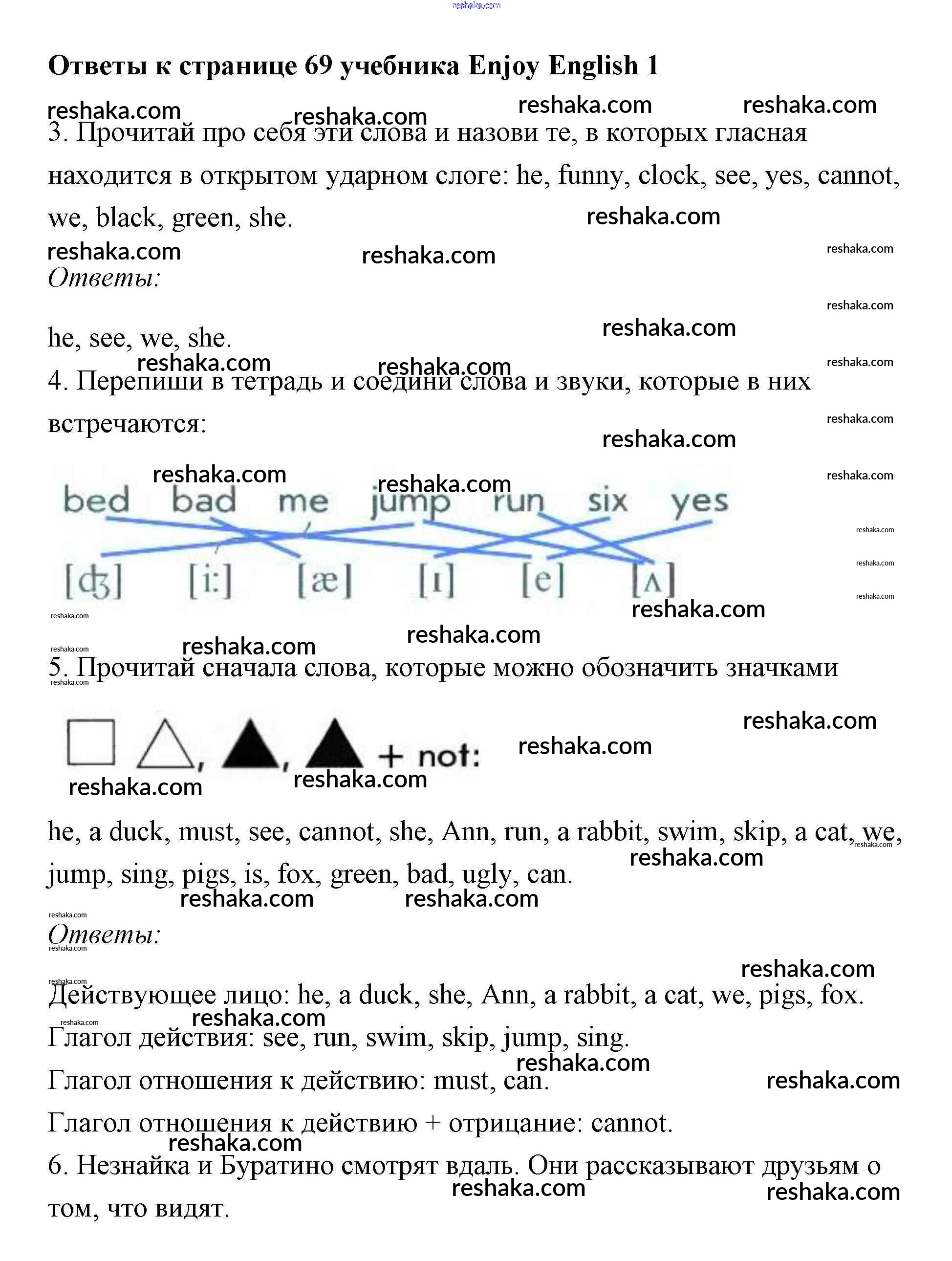 Решака - онлайн ответы Английский язык Биболетова, Добрынина за 1 класс Учебник 2010 - 69