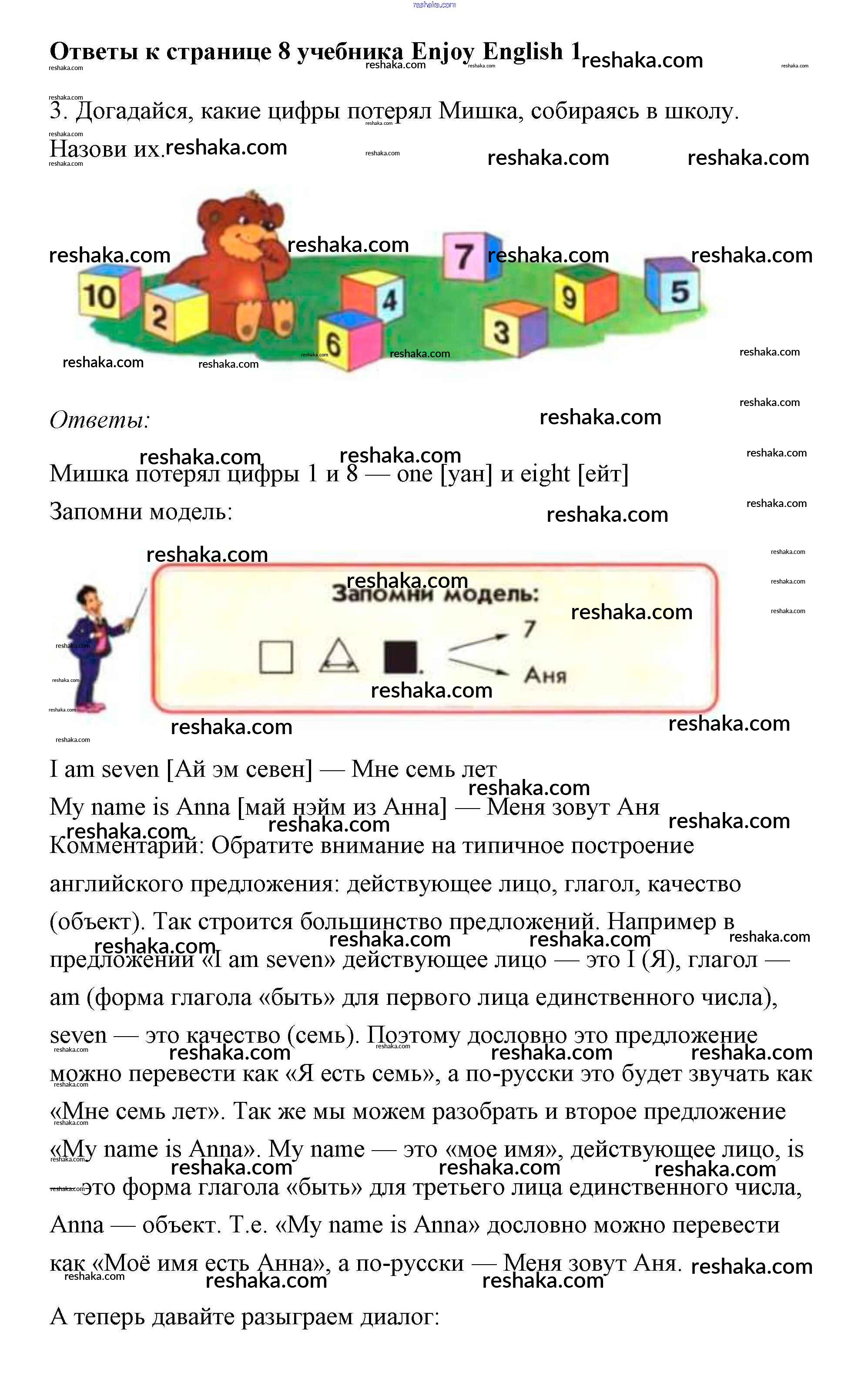 Решака - онлайн ответы Английский язык Биболетова, Добрынина за 1 класс Учебник 2010 - 8