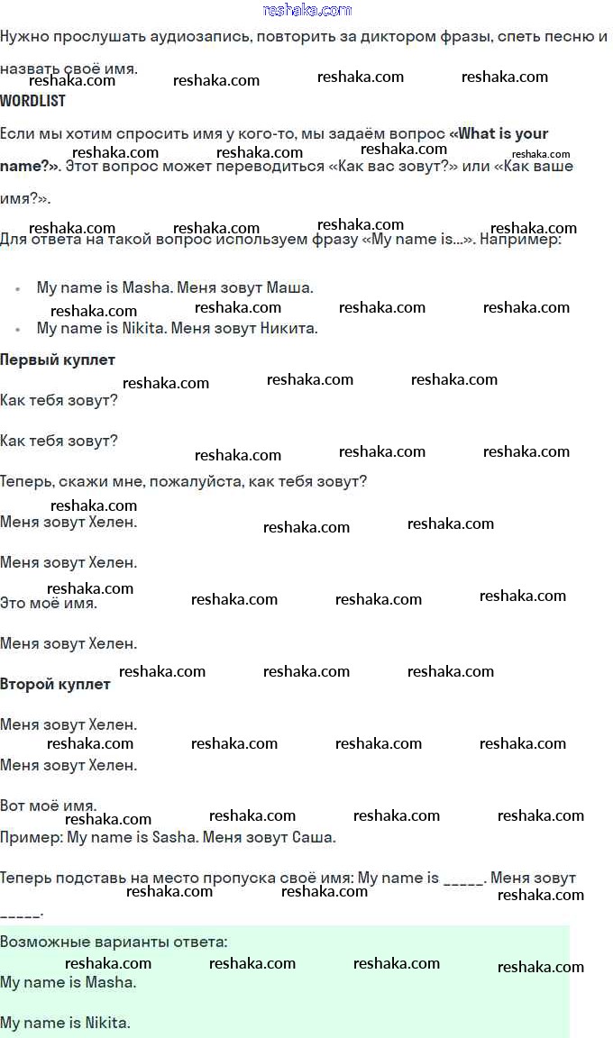 Решака - онлайн ответы Английский язык Верещагина, Притыкина за 1 класс Учебник 2017 - 34