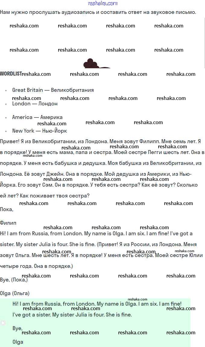 Решака - онлайн ответы Английский язык Верещагина, Притыкина за 1 класс Учебник 2017 - 55
