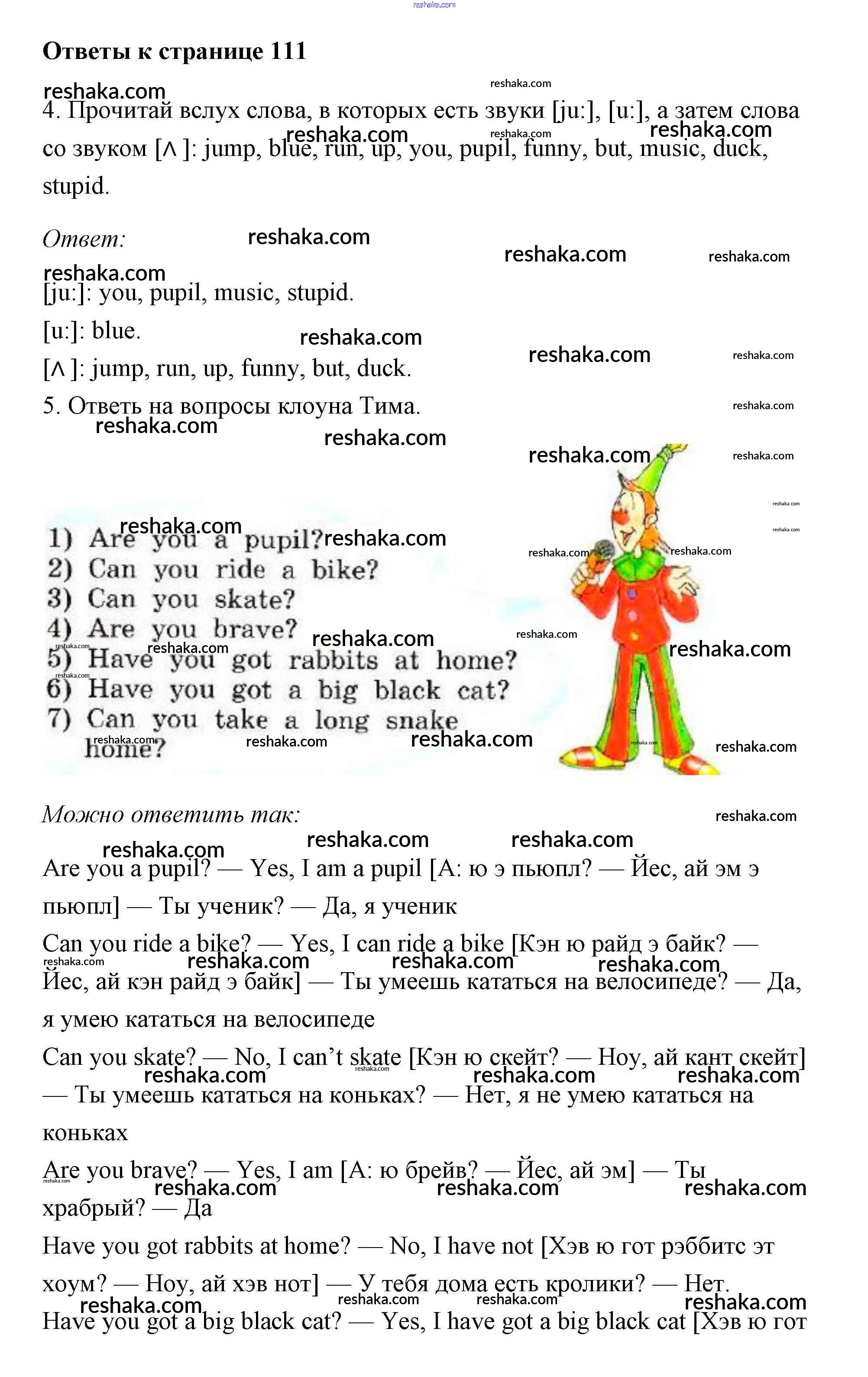 Решака - онлайн ответы Английский язык Биболетова, Денисенко за 2 класс Учебник ФГОС 2012 - 111