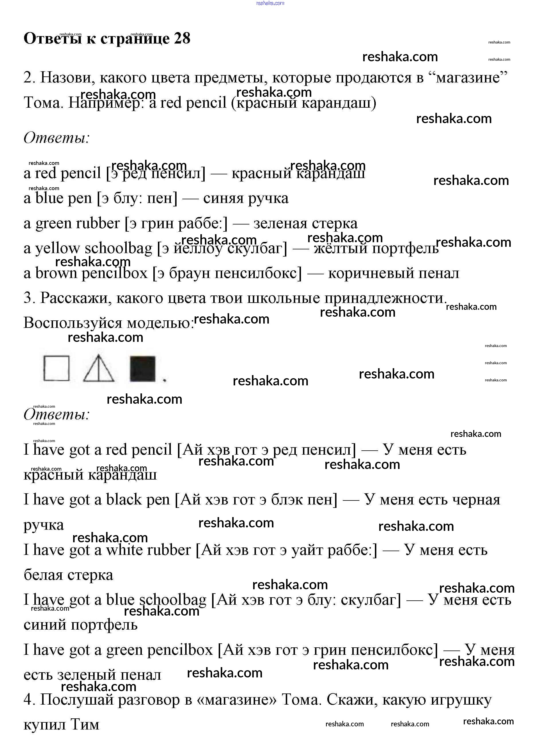 Решака - онлайн ответы Английский язык Биболетова, Денисенко за 2 класс Учебник ФГОС 2012 - 28