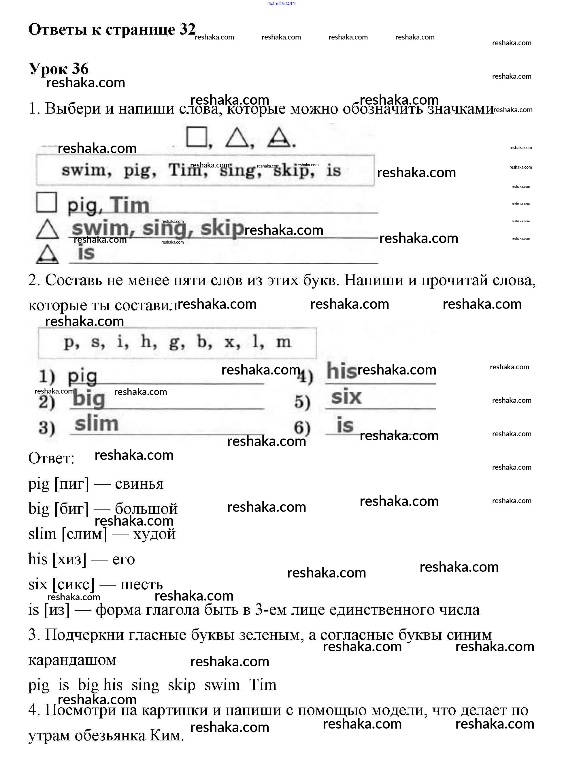 Решака - онлайн ответы Английский язык Биболетова, Денисенко за 2 класс Рабочая тетрадь с контрольными работами ФГОС 2015 - 32