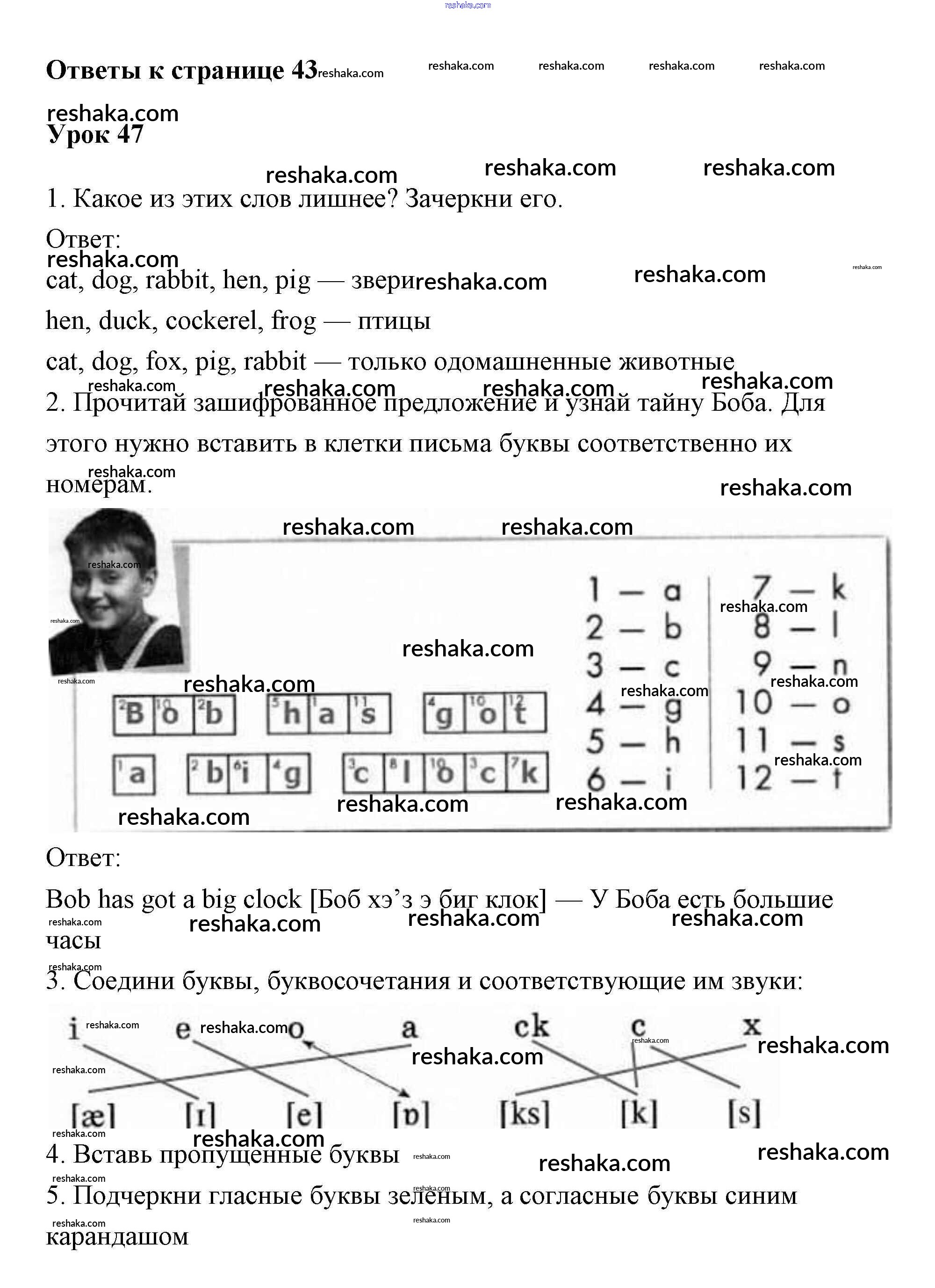 Решака - онлайн ответы Английский язык Биболетова, Денисенко за 2 класс Рабочая тетрадь с контрольными работами ФГОС 2015 - 43