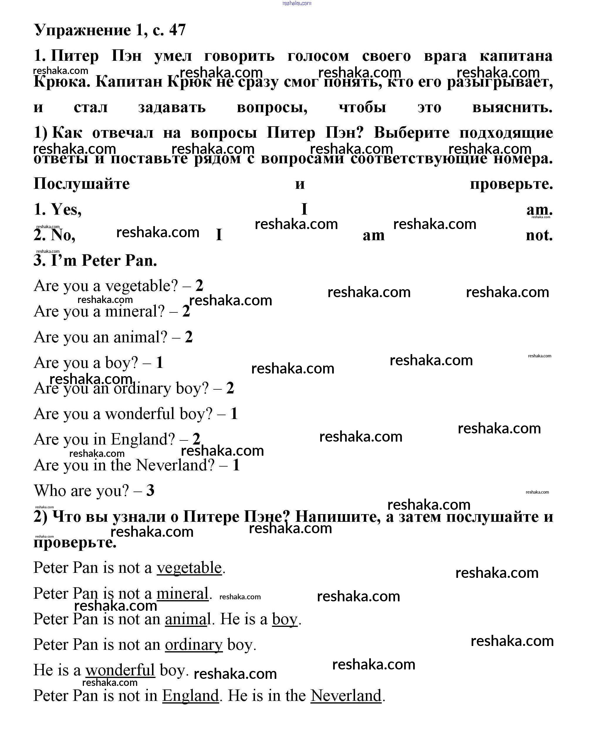 Представляем вам сборники по Английскому языку, с готовыми ответами к Рабочей тетради Кузовлев школьной программы для учеников второй класса. Это не просто гдз с ответом, а с подсказками, как верно решить Lesson 29. I am Peter Pan! 47. Проверяй домашку с умом и получай высший балл!