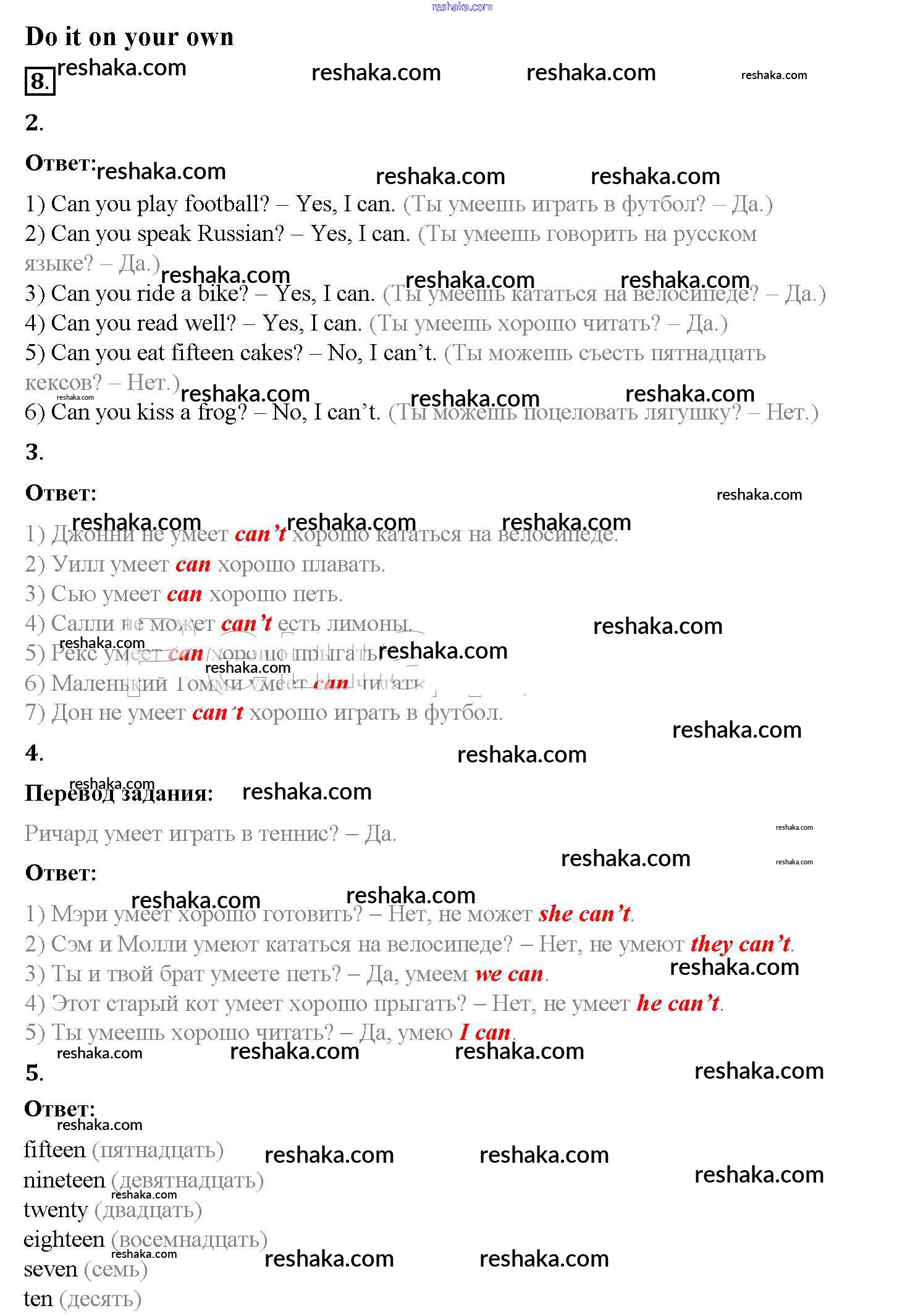 Решака - онлайн ответы Английский язык Афанасьева, Михеева за 3 класс Учебник ФГОС 2015 - 8