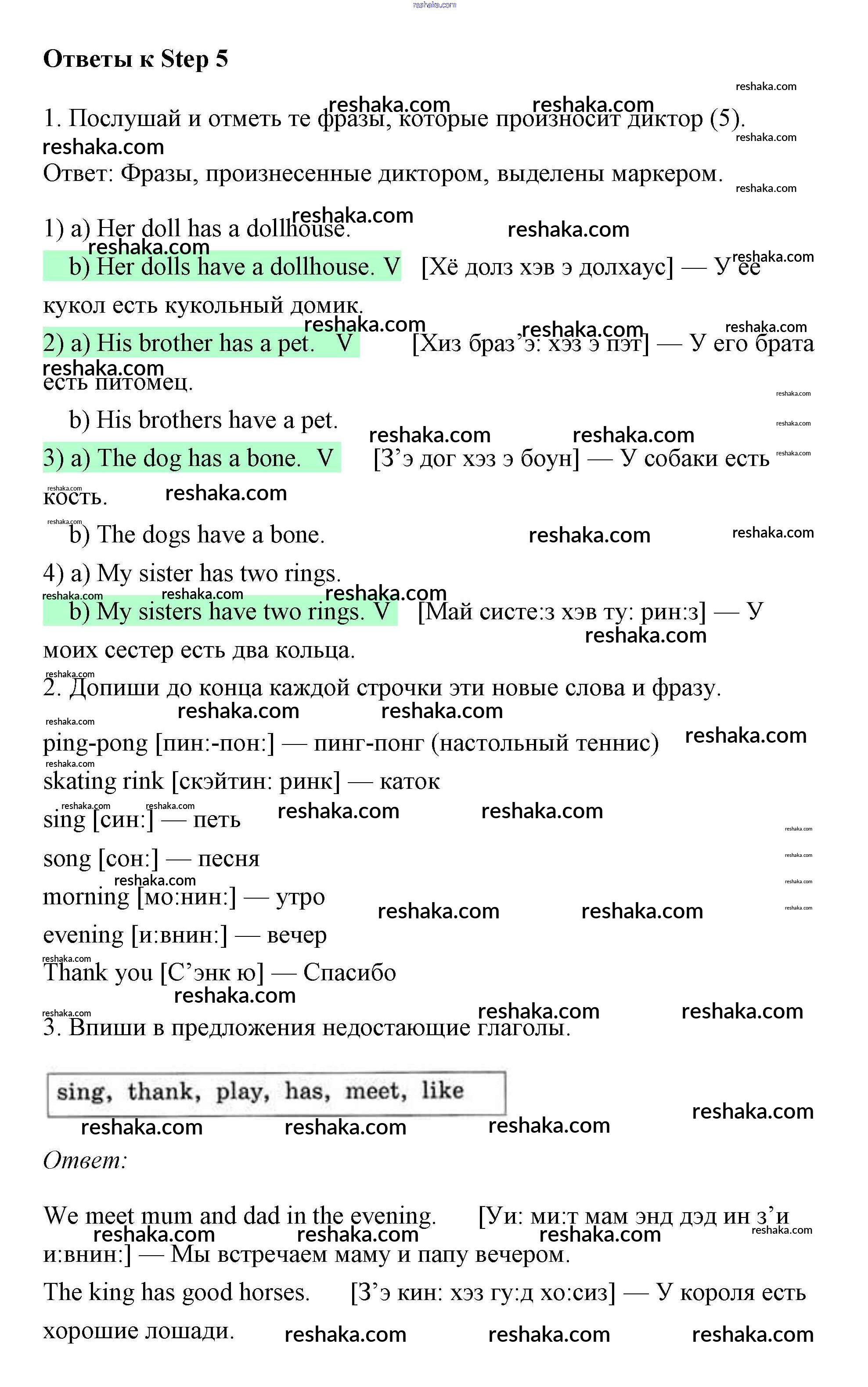 Решака - онлайн ответы Английский язык Афанасьева, Михеева за 3 класс Рабочая тетрадь ФГОС 2015 - Step 5
