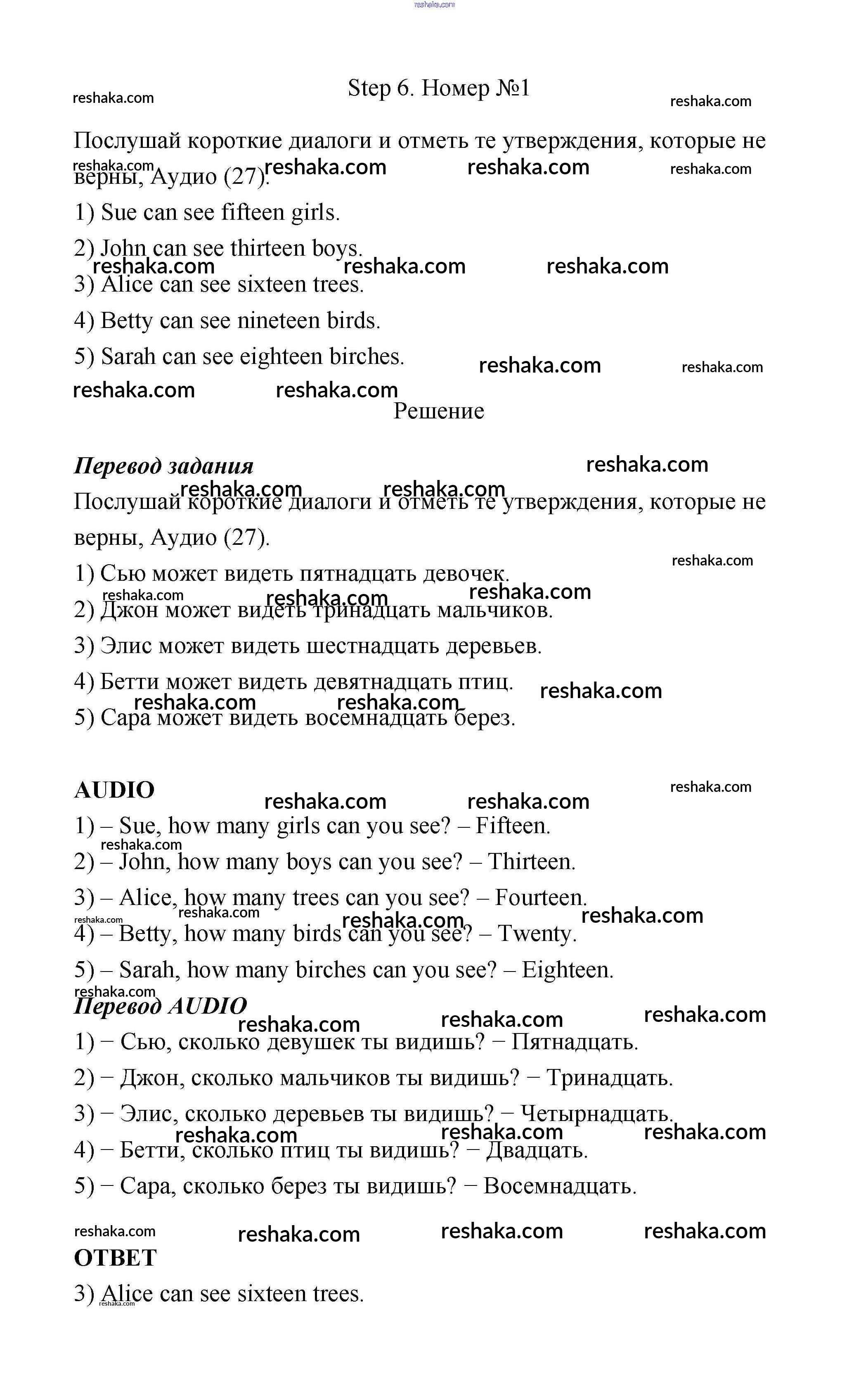 Решака - онлайн ответы Английский язык Афанасьева, Михеева за 3 класс Рабочая тетрадь ФГОС 2015 - Step 6