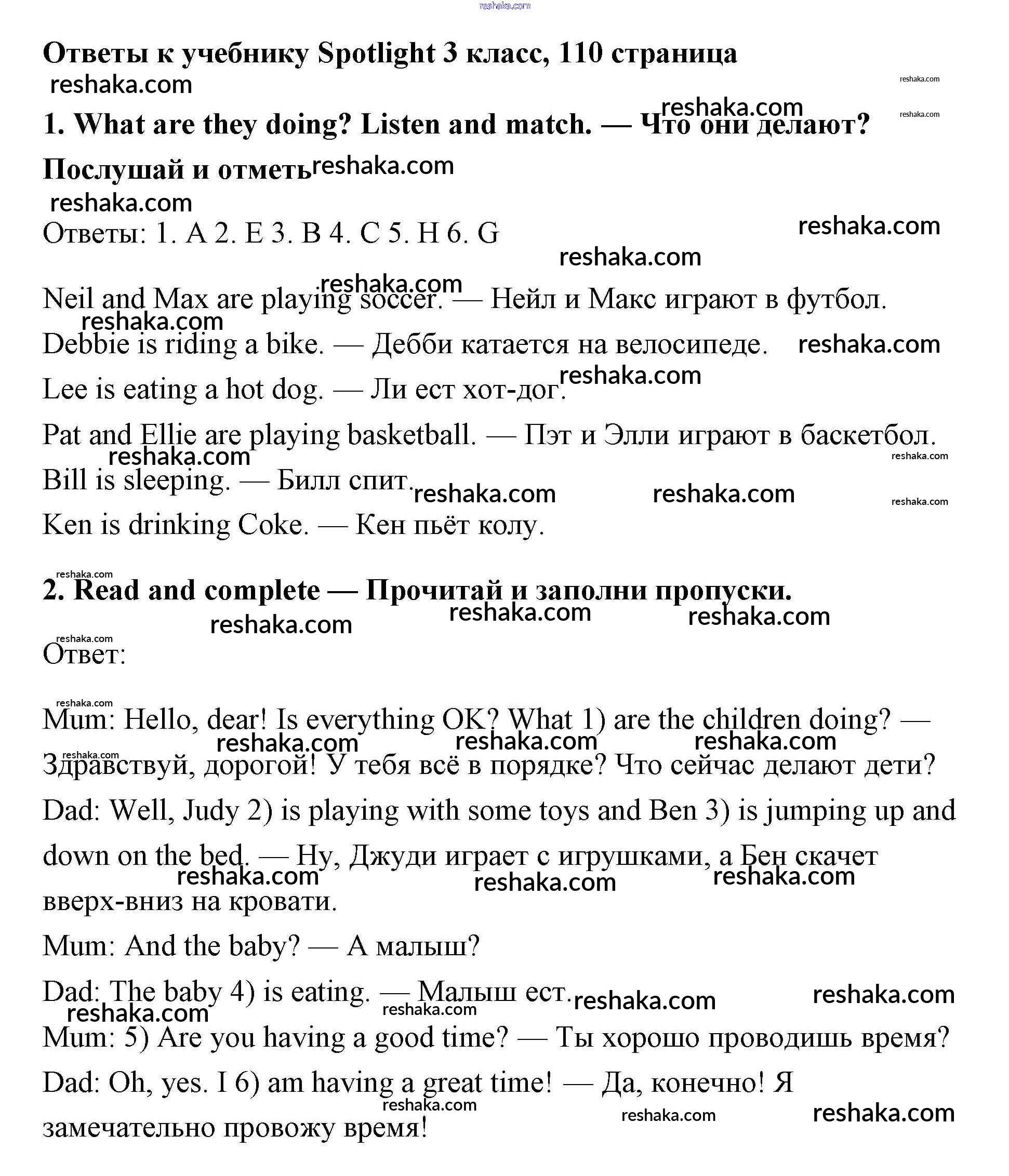 Решака - онлайн ответы Английский язык Быкова, Эванс за 3 класс Учебник ФГОС 2015 - 110