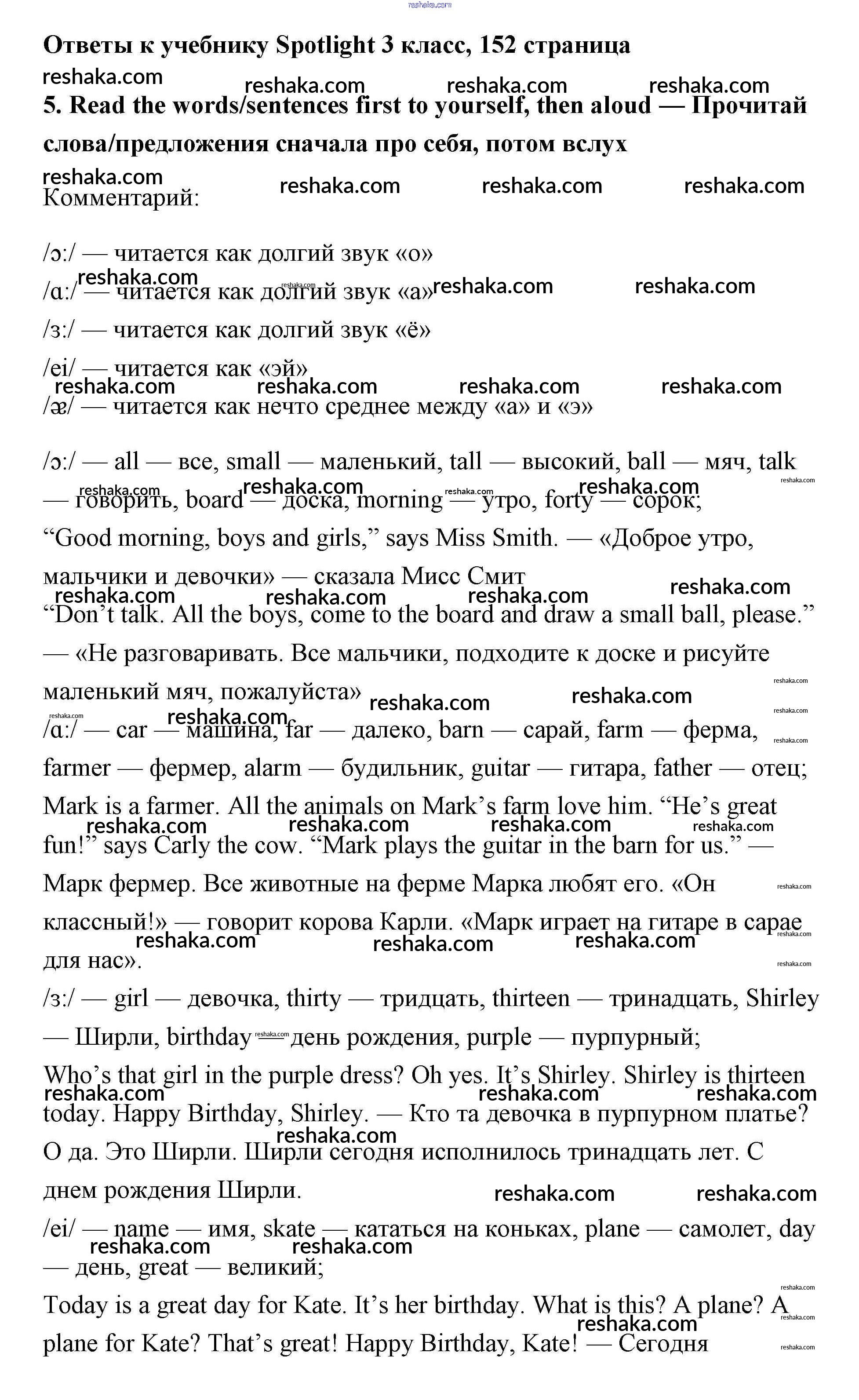 Решака - онлайн ответы Английский язык Быкова, Эванс за 3 класс Учебник ФГОС 2015 - 152