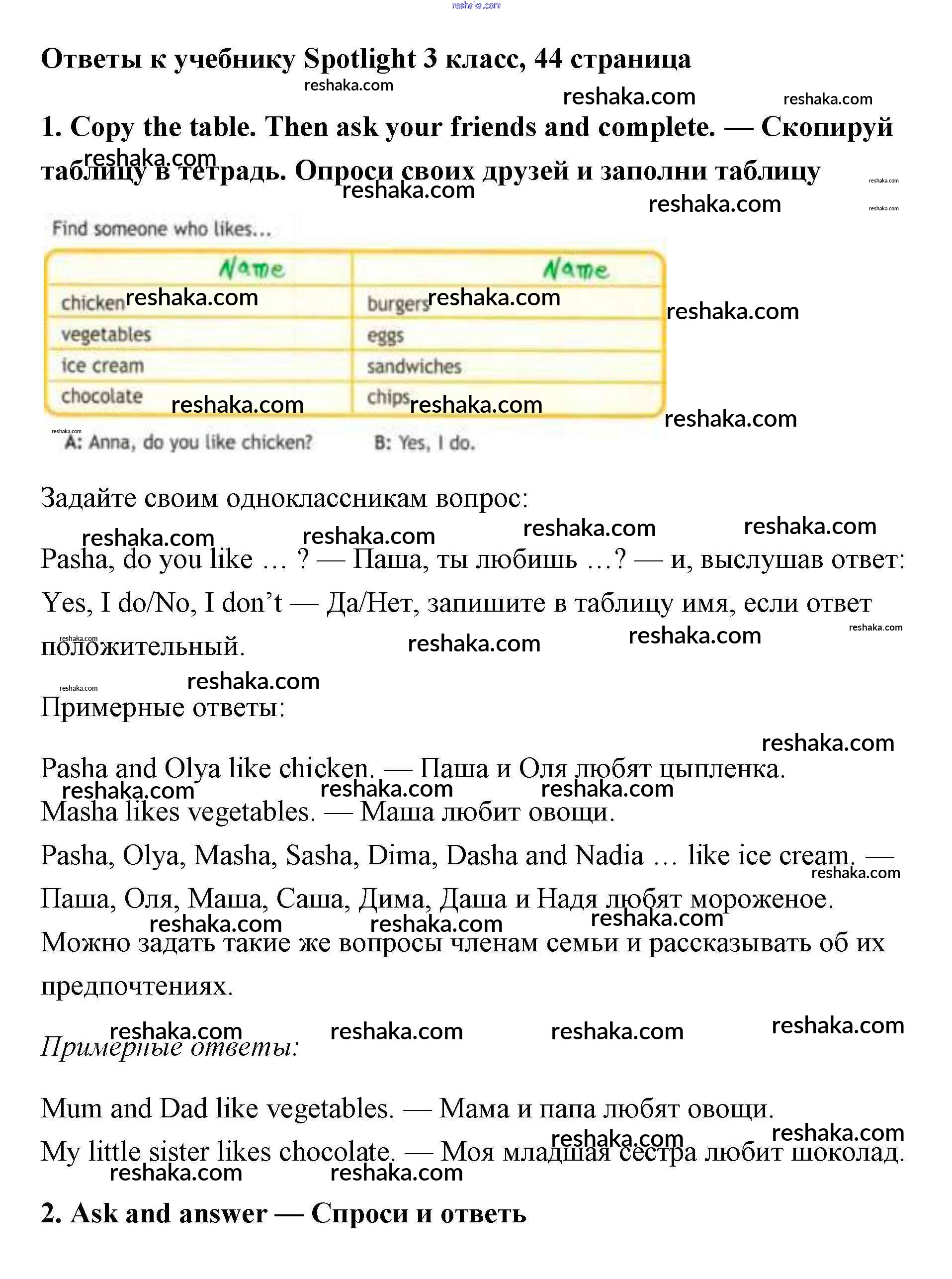 Решака - онлайн ответы Английский язык Быкова, Эванс за 3 класс Учебник ФГОС 2015 - 44