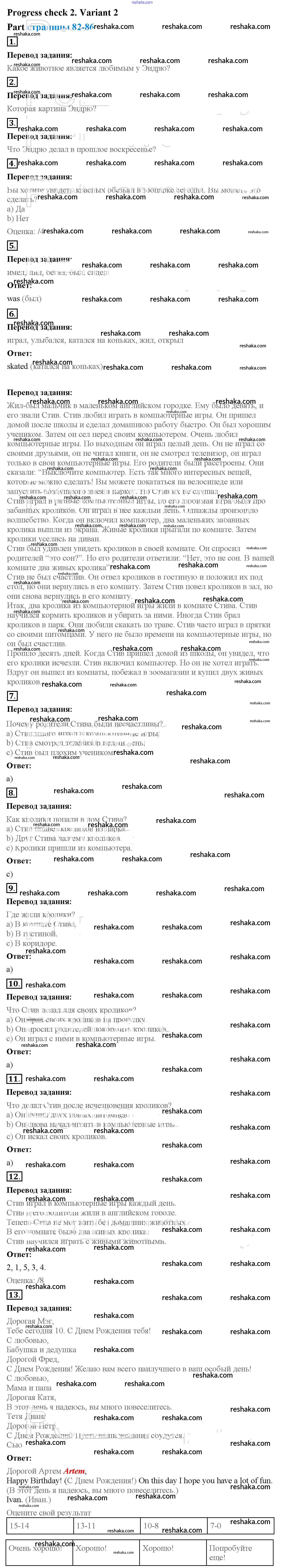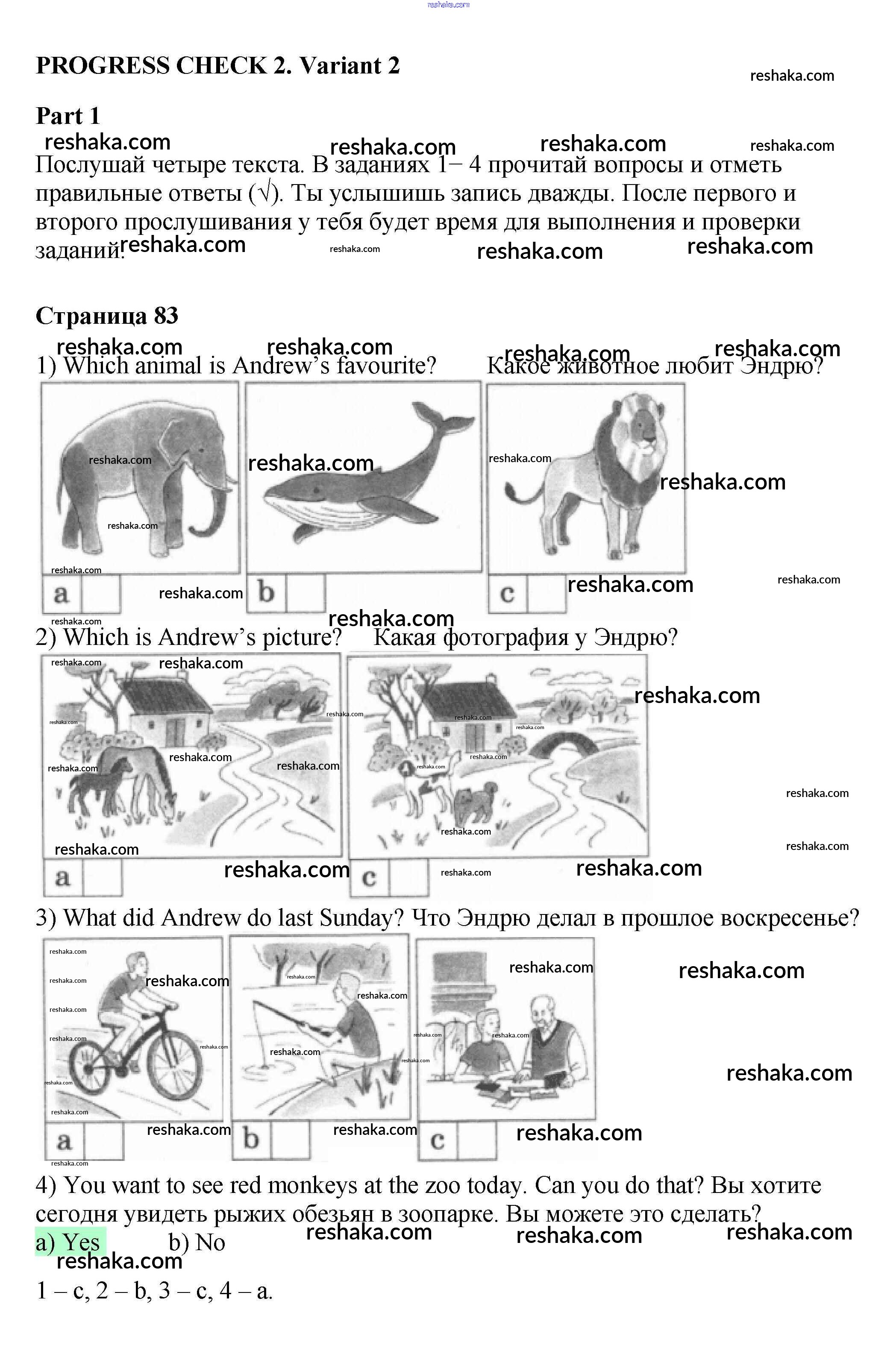 Представляем вам сборники по Английскому языку, с готовыми ответами к Рабочей тетради с контрольными работами Биболетова школьной программы для учеников четвертый класса. Это не просто гдз с ответом, а с подсказками, как верно решить Variant 2 Progress check 2 1. Проверяй домашку с умом и получай высший балл!