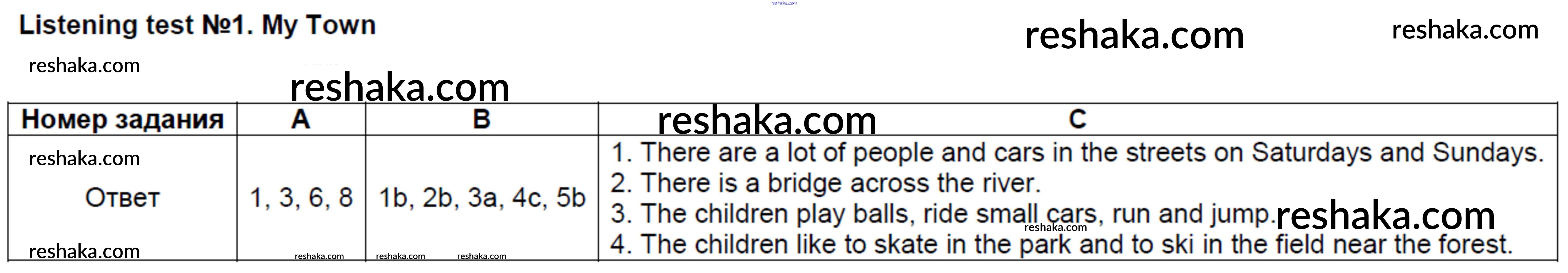Решака - онлайн ответы Английский язык Кулинич за 4 класс Контрольно-измерительные материалы (КИМ) ФГОС 2018 - №1. Listening test 1. My Town