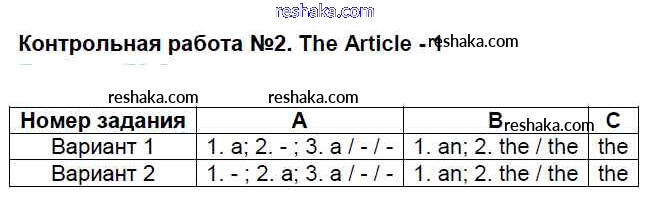 Решака - онлайн ответы Английский язык Кулинич за 4 класс Контрольно-измерительные материалы (КИМ) ФГОС 2018 - КР №2. The Article - 1