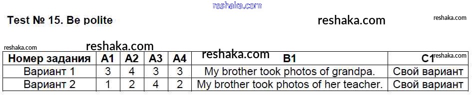 Решака - онлайн ответы Английский язык Кулинич за 4 класс Контрольно-измерительные материалы (КИМ) ФГОС 2018 - Тест №15. Be polite